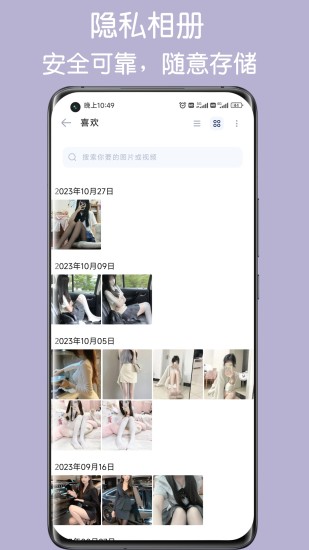 秘密空间是一款隐私保护软件,使用密码隐藏和锁定您的私人照片和视频,避免他人查看到您照片视频信息,打造个性化的隐藏私密空间。 *安全可靠-最低用户权限: 从手机导入照片、视频,仅请求照片权限,不会获得其他权限,您的隐私将得到保护并仅保存在手机上,不会与任何人共享。 *应用特点: 使用个人密码访问您的私人照片和视频、通过WiFi从手机或PC一键导入照片和视频,可批量导入,快捷且安全。 *易于使用: 人性化设计,界面简洁易懂好操作。 *紧急切换: 开启“摇一摇锁屏”,遇到紧急情况摇一摇,将自动锁屏,进行防护。 秘密空间,时刻关注您的隐私信息,不泄露、强保护、内存大,给您提供全方位的安心私密空间。