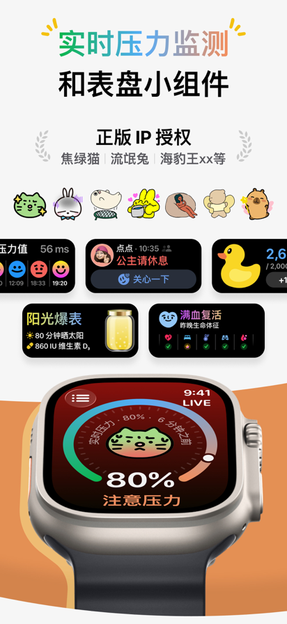 尝试最好的应用程序来监控您的压力、活动、睡眠和健康! 当您佩戴 Apple Watch 时,Apple Watch 会在白天跟踪多项心脏数据。压力自测应用程序专为 Apple Watch 用户设计。该应用程序会处理您的心脏数据,并显示您当前的压力以及在精神、情感和身体方面表现最佳的能力。 由于我们的压力和表现受到各种因素的影响,例如日常活动和睡眠,因此很容易在应用程序中跟踪影响您的表现、压力和健康的因素和程度。 您的身体反馈评分、HRV、静息心率 压力、恢复和健康水平会显示在您身体的信号中。压力自测 App 考虑您的直接身体信号,例如心率变异性和静息心率,并显示您当前在精神、情绪和身体方面表现最佳的能力。 分析您的身体信号,找出哪些是积极的,哪些会对您的压力、表现和整体健康产生负面影响。 改善幸福感的个人建议 每次测量都会根据您的数据对您当前的心理、情绪和身体状态进行推荐和解释。 APPLE WATCH 心电图测量支持 除了在您佩戴 Apple Watch 时跟踪的背景测量值外,您还可以使用内置的 ECG 应用程序或呼吸应用程序进行快速压力检查。 个人每周亮点 压力自测 App 应用程序分析您的每周数据,并分享有关您的压力、健康和幸福感的最重要趋势和发现。 您的每日压力热图 检查热图日历上的背景压力数据。在热图上,很容易评估压力更大和压力更小的日子、几周或几个月。 跟踪您的睡眠和活动 我们的应用程序分析您今天和 2 周的睡眠和活动趋势,以确定它们对您的压力和表现的影响。 添加您今天的感受 将您的情绪和心情添加到您的一天中,并分析它与您的其他数据的相关性。 苹果健康整合 压力自测 App 应用程序处理您的 Apple Watch 保存到 Apple Health 的信息。该应用程序需要提供对 Apple Health 的访问权限才能读取您的健康和活动数据。根据您的健康数据并使用高级算法 压力自测会计算您的分数。 您需要有 Apple Watch 才能使用该应用程序。 订阅价格和条款 压力自测 App 可免费下载。如果您选择升级到压力自测优质的,我们提供每月和每年的自动续订订阅选项。确认购买后,付款将通过您的 iTunes 帐户从您的信用卡中扣除。除非在订阅期结束前至少 24 小时取消订阅,否则订阅会自动续订。购买后,可以在 iTunes 的帐户设置中管理订阅并关闭自动续订。一旦购买,将不会为该期限的任何未使用部分提供退款。 在此处阅读有关我们的条款和条件的更多信息: 使用条款:https://www.stress-radar.app/terms-of-use 隐私政策:https://www.stress-radar.app/privacy-policy 重要的 压力自测应用程序不提供任何医疗建议或诊断,只能用于信息目的。压力自测应用程序的结果仅为估计值。 除了使压力自测序以及做出任何医疗决定之前,请寻求医生的建议。 联系方式 我们的团队非常重视用户的反馈。我们会尽快做出回应,并在计划下一个版本时考虑您的建议。如果您有任何问题、疑虑或建议,请随时通过 dev@activeace.app 与我们联系。