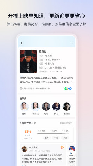 【独播热播 给你想要】 热播戏剧实时看:天地剑心、树影迷宫、命悬一生、沉默的荣耀、赴山海、不眠日、围猎、目之所及、生万物 精彩电影不间断:南京照相馆、聊斋:兰若寺、长安的荔枝、碟中谍8:最终清算、戏台、哪吒之魔童闹海 热门综艺看不停:你好种地少年第3季、一路繁花第2季、王牌对王牌第9季、喜剧之王单口季第2季、灿烂的市集 竖屏微剧随心刷:不露声色、桃夭、红豆寄相思、缘起三生、饲养夜色、焚情、爱恨与你共赴东流、成何体统 动漫番剧随心换:航海王、苍兰诀第2季、魔法公主的小烦恼、余烬行者、蜡笔小新 普通话、名侦探柯南 普通话 经典纪录片细品味:下饭江湖4、小城警事、中华史记、与恐龙同行、航拍中国、舌尖上的中国、人间世 海外剧集尽情选:请回答1988、邪恶与疯狂、金秘书为何那样、老友记、风骚律师、哥谭镇、明日传奇、小谢尔顿 【VIP会员 尊享特权】 1、内容特权:院线新片、海量高分大片、热剧抢先看、热门综艺、付费影片折扣、畅读小说。 2、观影特权:广告特权、1080P、帧绮映画、杜比全景声、专属弹幕、下载加速、预约下载。 3、身份特权:七端全屏通、畅享多会员、尊贵标识、生日礼包、专属客服