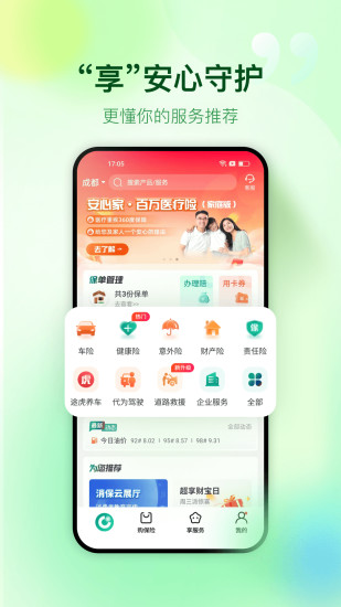 平安保险好生活•24小时保险生活服务管家 平安保险好生活APP是平安产险最新打造的以保险+服务为核心的生活服务平台。致力于提供一站式保险购买、理赔、续保等功能,并提供旅游出行、居家生活、医疗健康、等数十项生活相关服务和资讯内容 ——主要功能—— 【保险购买】可以在首页、产品菜单栏中选购精选保险,并在注册时获赠保险折扣券。 【在线理赔】在APP内购买的保险可享受便捷的在线理赔服务,需按要求上传理赔所需材料进行审核。 【新人有礼】用户可在首次下载注册APP后免费领取新人礼包一份,包含丝苗米,洗衣液等伴手礼。 【父母体检】用户可在首次下载注册APP后在“活动中心”免费领取父母体检券一份。 【积分商城】用户还可通过购买、分享产品、邀请好友、参与活动获取海量积分,积分可通过商城兑换实物和服务卡券。 【线上就医】用户可在首页、发现菜单中享受免费问医生服务,包括导诊接待、选择医生、医生诊断、康复管理。 【生活服务】用户可在发现页享受便捷的健康、旅游、居家、生活、出行等一站式服务。 -----联系我们----- 微信公众号:平安保险好生活 - 客服热线:95511