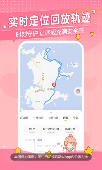 【心动日常,365心动计划】 坚持每天一句“我爱你”,打卡提现1314元! 【情侣报备,Ta的手机使用全记录】 1.实时定位,轨迹记录:随时查看准确定位,整天行程轻松掌握; 2.手机记录,自动报备:手机使用记录,离开到达,上下车时间自动提示,时刻守护你的另一半。 【你的恋爱顾问】 甜蜜小窝:和TA一起打造一个温馨、浪漫且充满恋爱气氛的情侣空间; 情侣空间:做任务赚金币,和TA一起装饰温馨的“小家”; 甜言蜜语:每天的“早安午安晚安”都不能迟到,聊天,只你可见; 心情日记:记录每天发生的点点滴滴,异地恋也能随时发现TA的心情变化; 恋爱清单:和TA一起打卡100件小事,让恋爱充满仪式感; 距离查看:实时定位回放轨迹,安全感满满; 恋爱互动:抓娃娃、扭蛋、五子棋、拼图比拼多个情侣互动小游戏,让异地恋更加甜蜜; 【365心动计划】 心动日常推出365心动计划,情侣坚持每天在「心动日常-甜言蜜语」中互发“我爱你”,打卡成功连续365天可提现1314元,奖励由平台所属公司全额承担,完成每日打卡还有随机额外奖励,累计30元可提现。 【联系我们】 QQ群:316652147