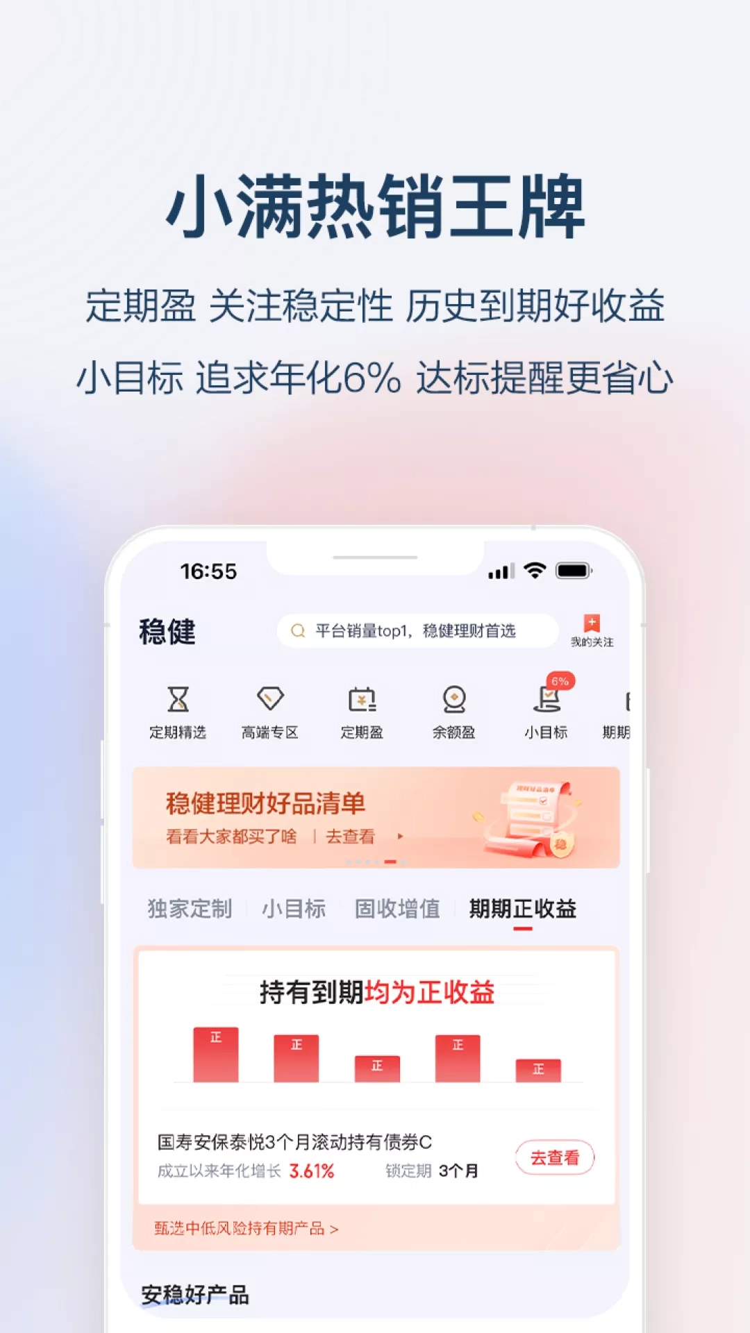 你财富:简单投资,安心生活。 公司介绍: 你财富是360公司旗下财富管理平台,于2015年8月对外上线,致力于为7000万投资人提供智能、简单的投资方式,“简单投资、安心生活”是我们的愿景。 【重磅福利】 1、基金申购/定投费率全场1折起。 2、基金实盘大赛火热进行中,个人赛、团队赛等赛事不断,登陆APP每月瓜分2万奖励金! 【明星产品】 1、货币增强:货基和债基组合产品,追求超越货基的收益,安全性较高,回撤较低,追求目标年化收益3%+,适合30天以上闲钱的资金投资; 2、固收宝:安稳理财产品,多款产品供挑选,追求正收益,适合存款用户; 3、随鑫盈投顾组合基金:约定止盈年化收益率9.5%,随鑫盈是一款股债策略动态平衡型投顾组合产品,根据市场温度,控制股票型基金比例在30%~60%,自动调仓,适合一年以上闲钱; 4、小猪佩奇吹口哨投顾组合基金:原360员工专享产品,追求长期年化12%以上,根据市场行情动态调节; 5、高端理财:专为高端理财客户需求提供,包含短期、中期和长期等不同期限的风险等级产品,多款产品供选择,尤其是固收类产品,运行平稳,安全性较高。 6、周周实盘:是投研团队真金白银的定投操作。策略于2020年4月20日成立,引入了巴菲特的老师,价值投资的创始者格雷厄姆的理论,即股债收益率比理论。实盘操作的定投年化收益率目标为:利用2年以上不用的闲钱,希望实现长期年化收益率大于等于10%,回撤小于等于15%的目标。 策略特点: (1)宽指数基金、永不清零 (2)适合长期投资、享受复利、长期有望创新高 (3)熊市低价积累财富,牛市高价收获财富 【品牌主要荣耀】 360你财富“360互联+大数据指数基金”荣获2015年度智慧金融类产品奖项。 360你财富2015年荣获投资者报互联网金融公司投资者保护奖。 360你财富2015年荣获消费日报“互联网金融十大创新平台”。 【联系方式】 服务热线:4000-643-600(9:30-18:30) 官方网址:https://www.nicaifu.com 微信公众号:360你财富 微信服务号:你财富服务号 风险提示:提及的基金产品不保证本金不亏损也不保证收益情况。约定止盈收益及追求目标收益不预示未来表现,也不构成产品业绩表现的保证。产品销售服务由持牌机构提供,360你财富仅提供信息发布和流量导入服务。投资前应认真阅读相关法律文件及公告,选择与自身风险承受能力、投资目标相适应的产品,自主决策、自行承担投资风险。市场有风险,投资需谨慎。