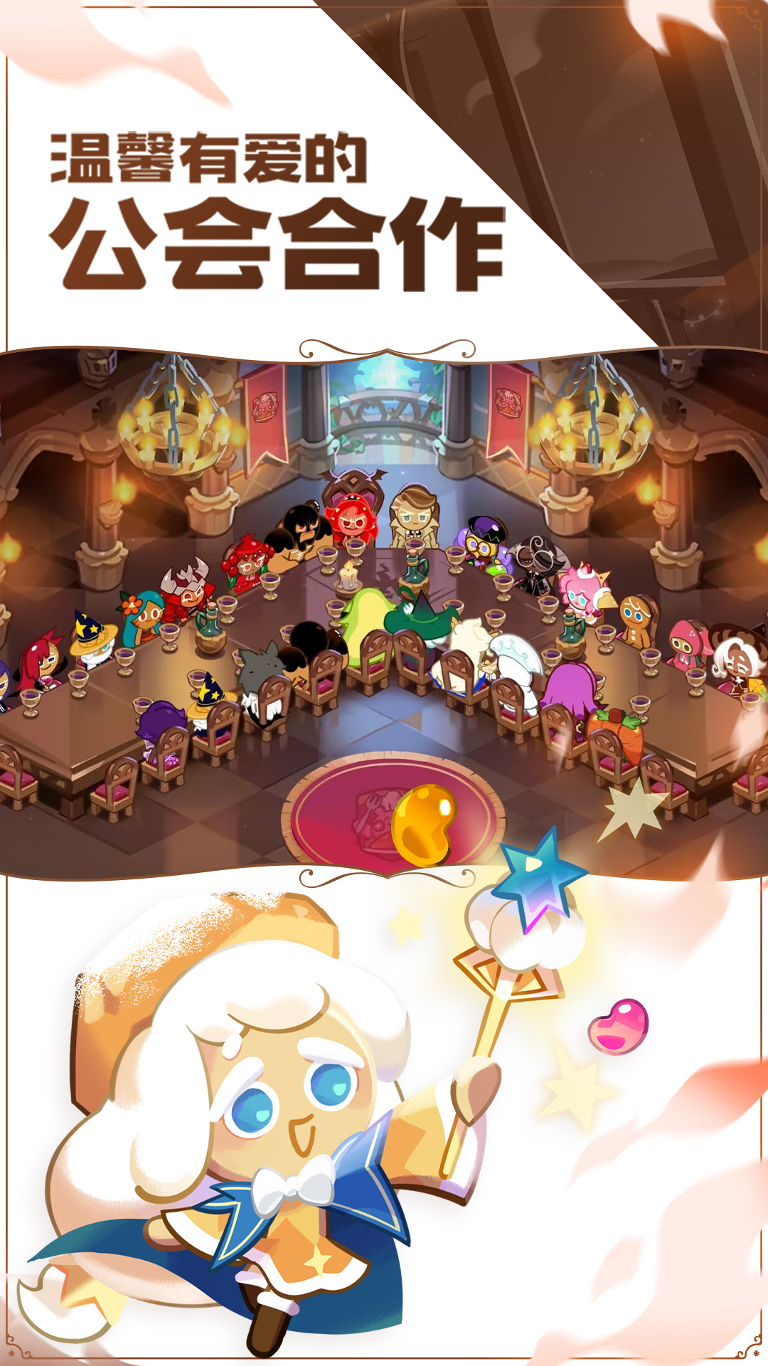 《冲呀!饼干人:王国》是一款结合模拟经营玩法元素的卡牌战斗手游,主要讲述在传说中的面包大陆上,勇敢的饼干们逃出魔女的烤箱,逐渐聚集伙伴,携手创建富饶又美丽的饼干王国的故事。 在游戏中,玩家一方面需要创建自己的王国,开垦荒地,建造生产,甚至装修打扮自己的家园,让饼干们安居乐业。同时,也要和饼干们探索未知大陆,在冒险中不断变强。各色的饼干各具魅力,同时也在战斗中发挥着各式各样的作用,如何高效出战就要靠玩家的指导啦。 游戏中不仅有可爱的饼干日常,热火朝天的建造生产,也有冒险路上奇妙的故事和热血的对决,更有深远的阴谋在黑暗中伺机而动。快来加入饼干人王国,一探究竟吧!
