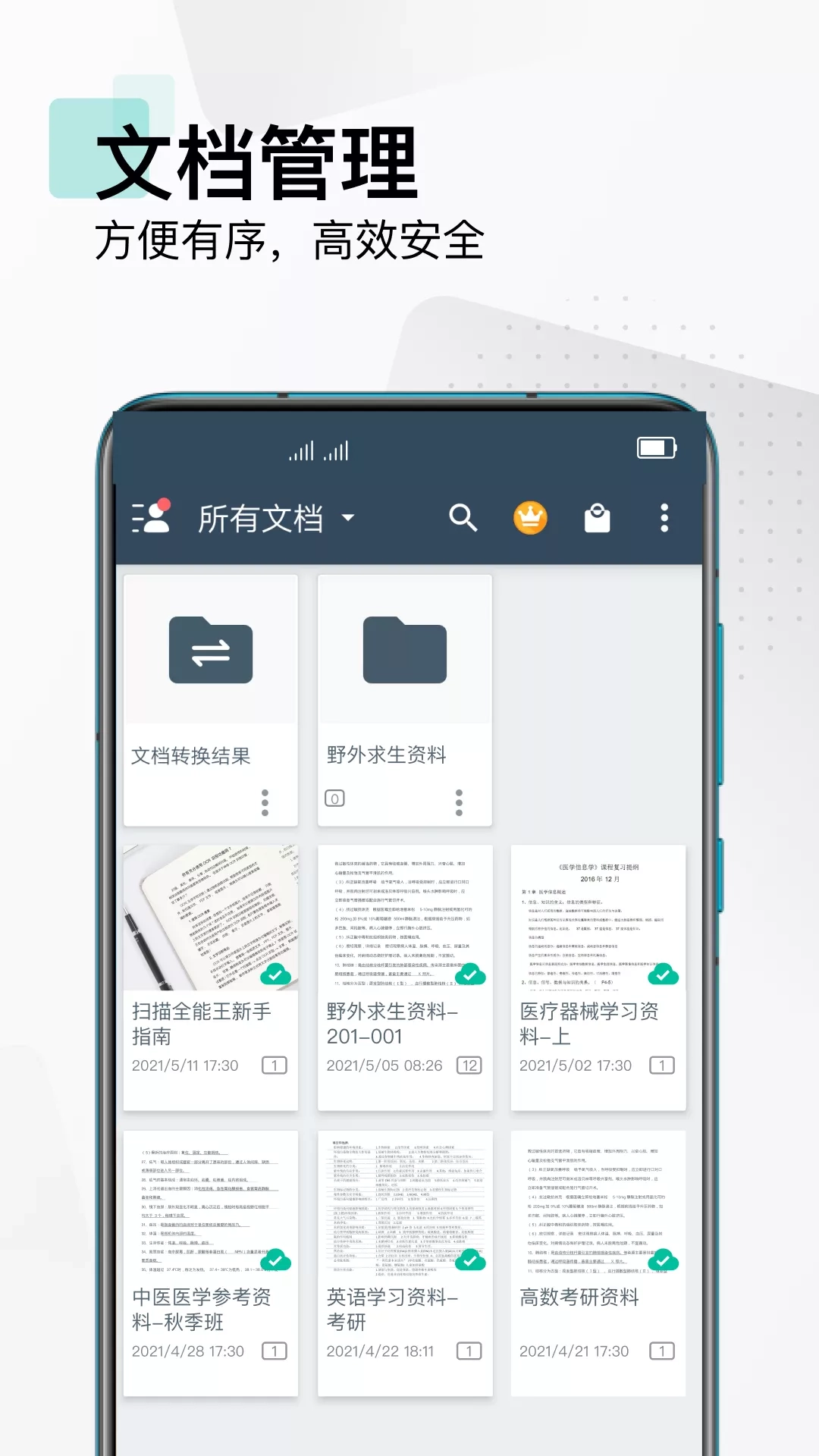手机描仪,文档管理工具。拍照清晰可切边裁剪图像,裁剪你需要的文件内容,生成PDF。邮件发送、连接打印机、传真、微信共享电脑脑功能齐全、云存储,多设备多途径数据区!实用型的办公无纸化节能工具! 全球几千万用户使用,2011年服务至今 扫描王图像处理技术功能让你的文件清更清晰,陈旧文件也一样可以增强 代替扫描仪,随时随地分享,让你的办公效率显著提高 功能亮点 1:手机上的扫描仪 手机拍照文档,自动切边去除杂乱背景,生成JPGG图片或PDF。 2:图片OCR,可以识别文字 OCR文字识别,拍纸质文件,可以识别图片的文字内容,搜索更简单 3:云存储,让你更安全的管理文件,查阅更方便 手机、平板、电脑,多设备随时,随地查阅文档。 标签归类,手写批注,文档加密,方便有序,高效安全。 4:无线打印,微信,QQ,邮件多功能分享 支持无线打印,可以微信,QQ,邮件多功能分享,还有拼图功用 扫描王的无纸化理念,是为了配合你们的需果,更适合哪些人群 1:商务人士:出差不用携带文件,更可以扫描合同、文件,可以通过微信,邮件等即时通讯工具、共享,随时随地工作 2:学生,教师,教授,音乐,作家,设计师等:随手扫描笔记、课堂讲仪,乐谱,作家手稿、PPT 3:手绘:没有扫描仪,也能把手绘画稿美美地秀给小伙伴们了~ ----使用建议---- 为确保你能获得清晰的扫描图,请在拍照时: * 光线充足,尽量避免抖动 * 尽量使图片占满拍摄屏幕