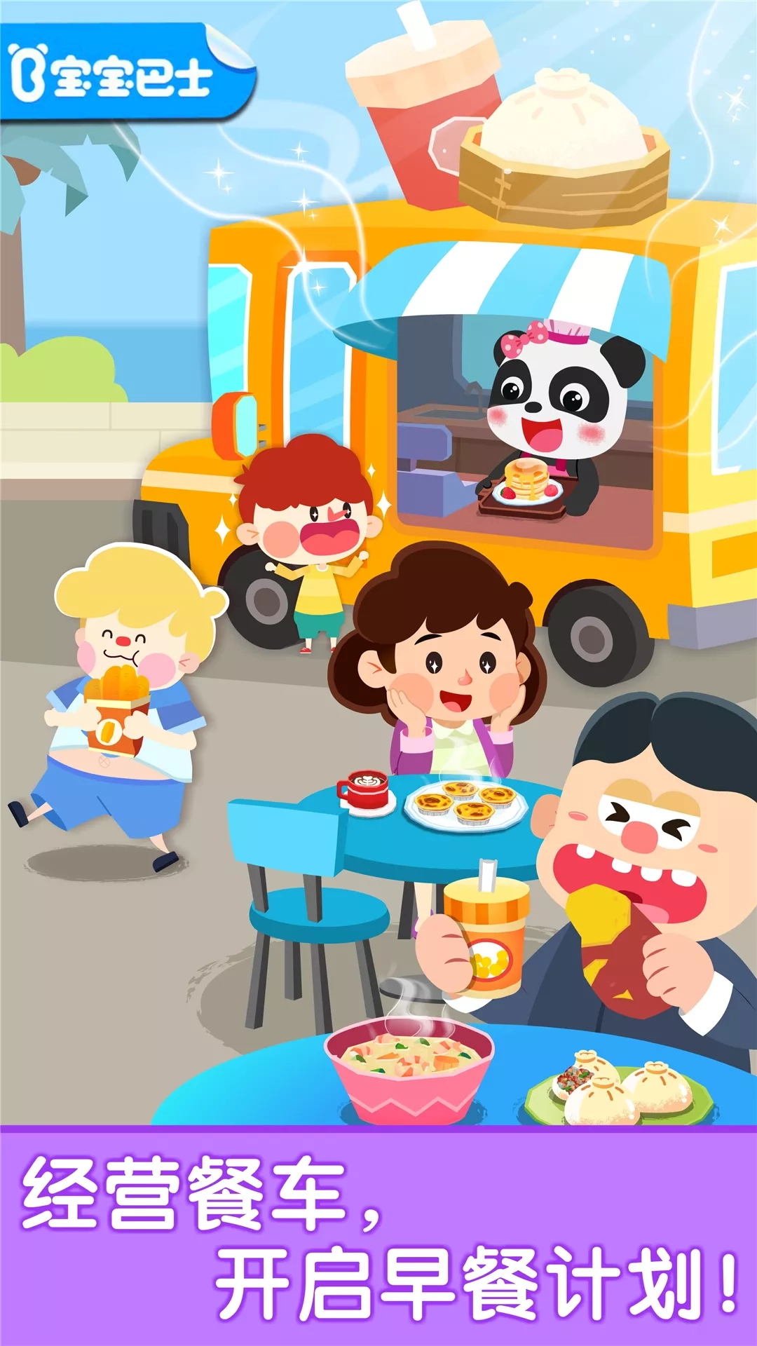 宝宝们,一起来经营早餐车,为顾客制作美味早餐! 小小厨师开工咯! 欢迎光临【宝宝早餐车】!顾客们都饿了么?快来点餐吧。挑选主食、小吃,再点杯健康饮品。科学搭配早餐,营养摄入更均衡。顾客点好餐啦,宝宝快去厨房烹饪美味吧! 花式面点,唤起一天活力! 来做松饼咯,先处理香蕉、牛油果,加入牛奶鸡蛋等搅拌均匀。将面饼小火煎熟,淋上巧克力酱,别忘记加酸甜草莓装饰!接着制作皮薄馅大的中式面点:肉包,这可充分考验宝宝的小手灵活度。 美味小食,激发儿童食欲! 将鸡肉切条,包裹面粉,撒上面包糠,放进锅里,炸至金黄,外酥里嫩的鸡排做好啦。再烤个酥脆蛋挞,将牛奶、面粉、炼乳搅拌均匀,装进蛋挞皮,放入烤箱……烤箱也能烤红薯哦。 健康饮品,入口细腻爽滑! 把黄豆倒入榨汁机,搭配花生和核桃,研磨、装杯,香醇又健康的豆浆完成!发挥想象力,DIY混合果汁。摘葡萄、切苹果、剥橘子,放入榨汁机,按下按钮,启动机器,期待混合果汁的魔力! 【宝宝早餐车】里还有土豆泥、瘦肉粥等美食,宝宝快来烹饪美食,定制营养早餐。 宝宝巴士BabyBus是专注打造儿童启蒙数字产品的原创品牌,累计服务全球5亿家庭用户。宝宝巴士秉承“快乐启蒙”的理念,用奇妙有趣的方式为儿童提供免费的数字内容,量身定制“好听”国学故事、“好看”儿歌动画、“好玩”互动APP等系列内容产品,让孩子在趣味中认知世界,感受“真、善、美”。 宝宝巴士BabyBus是全球5亿家庭用户的选择,陪伴宝宝快乐成长,让宝宝学会独立思考,享受探索世界的乐趣。同时也为家长们提供专业、全面、丰富及个性化的启蒙产品。 【宝宝巴士】儿童启蒙app,获得宝宝巴士世界、宝宝巴士儿歌、宝宝巴士故事、宝宝巴士奇妙屋、宝宝巴士、恐龙王国、宝宝恐龙家园、宝宝梦想小镇、宝宝爱整理、公主化妆舞会、宝宝救援队、宝宝建城市、时尚小公主、奇妙宠物美妆店、宝宝爱水果蔬菜、宝宝动物世界、化妆小公主、宝宝甜品店、奇妙运动日、宝宝魔力画笔、宝宝航海挑战、宝宝幼儿园、奇妙碰碰车、奇妙美味日记、奇妙企鹅部落、奇妙生日派对、奇妙梦幻城堡、奇妙昆虫日记、奇妙的动物家庭、奇妙珠宝店、奇妙地下王国、宝宝家庭日、奇妙怪物美容、宝宝美食派对、奇妙鲜花房、宝宝台风天气、宝宝家园清洁、奇妙思维闯关、宝宝庄园等使用者的一致推荐。 欢迎联系: 微信:宝宝巴士 微博:@宝宝巴士 官网:http://www.babybus.com 邮箱:cn@babybus.com