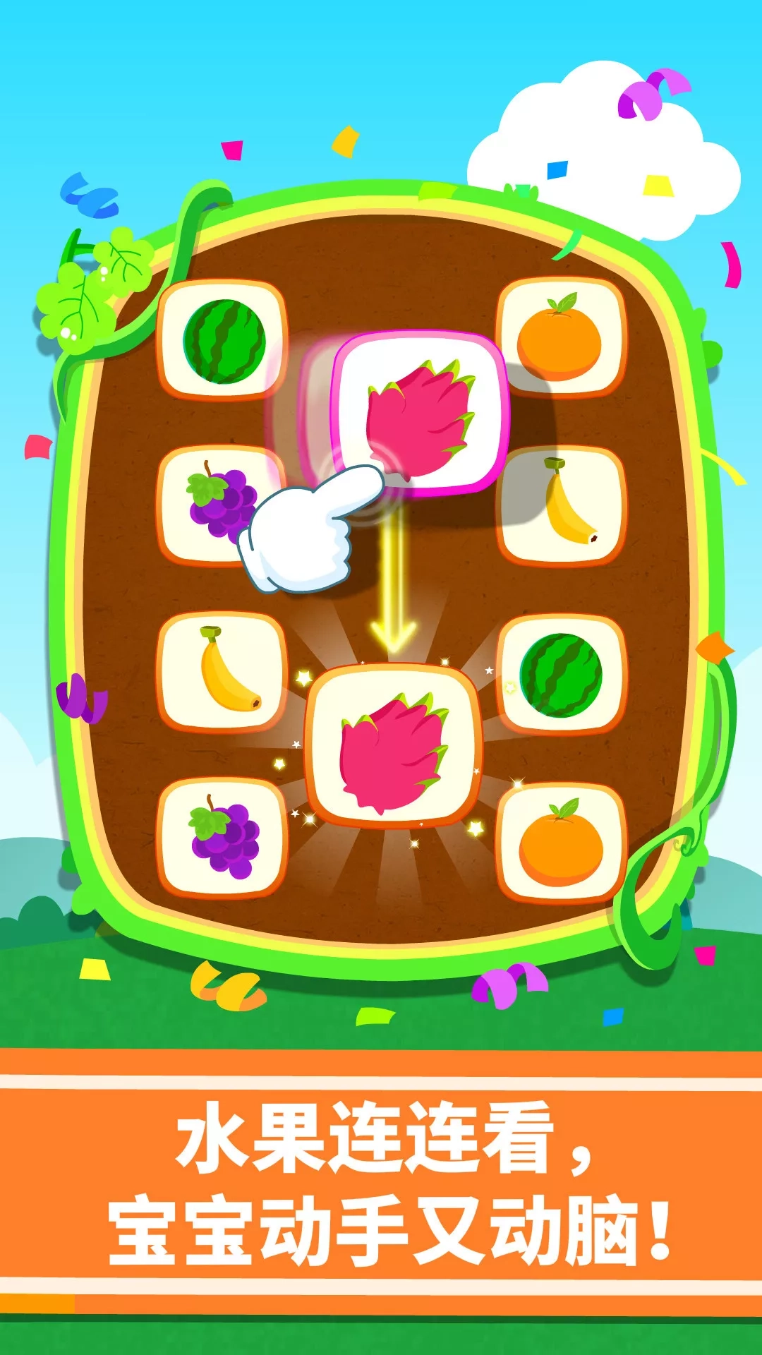 圆滚滚的土豆长在地底还是地上?玉米粒变身爆米花需要几步?宝宝们的小脑袋里有着无数个问号,对世界充满了好奇。【宝宝爱水果蔬菜】来帮宝宝解答啦! 【认识十种生活中常见食物】 土豆,西瓜,香蕉,豌豆,草莓,大米,鸡蛋,胡萝卜,西兰花,玉米。 【采摘蔬果,锻炼动手能力】 小手点点豌豆荚,找出藏起来的豌豆。再去摘草莓,一起做草莓蛋糕咯。 【模拟种植,了解大米由来】 在为稻苗浇水、收割稻谷中,知道大米是辛勤工作换来的,学会爱惜食物。 【视听结合,直观认知蔬果】 卡通食物形象,萌萌哒的声效,既增添了趣味性又给宝宝更加直观的认知。 【益智互动,建立形状概念】 宝宝喜欢什么形状的荷包蛋呢?来匹配模具,敲碎蛋壳,煎出各种形状的荷包蛋吧。 【趣味操作,宝宝将爱上蔬果】 叫醒打瞌睡的西瓜,坐香蕉船航海冒险……丰富的操作,宝宝将爱上蔬果,养成不挑食的健康好习惯。