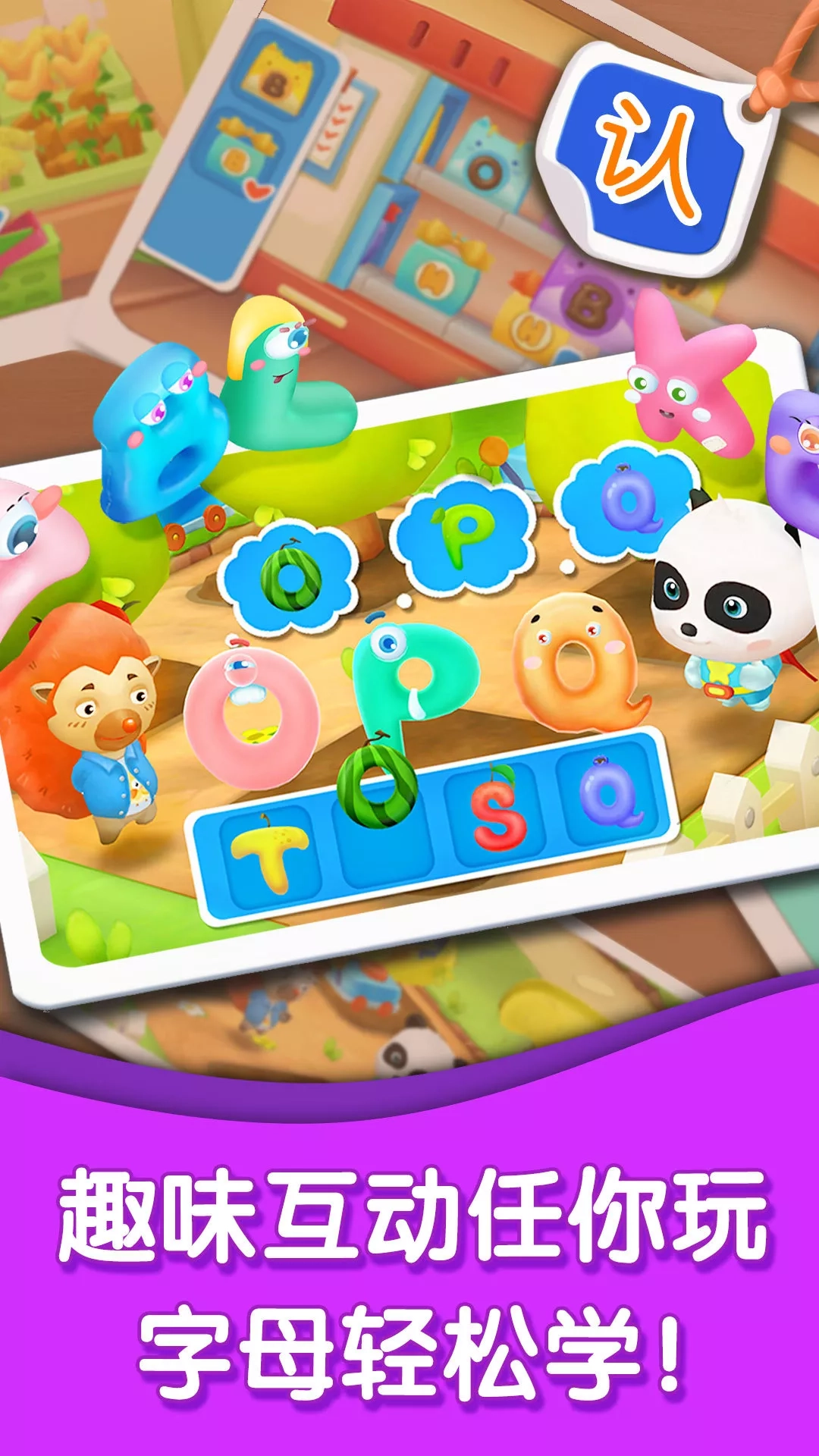叮咚!现在是【宝宝字母小镇】时间! 【一站式互动】+【激萌剧情】+【闯关互动】。 听、读、写、认多重互动,告别死记硬背,激发孩子学习兴趣! 和角色一起互动、了解并认知26个英文字母、保卫小镇和平! 产品内容 玩中学: 【趣味互动】精彩剧情搭配趣味学习,玩中学的互动方式,让孩子趣味认知; 【简单四步走】听、写、读、认简单四步,循序渐进,了解发音、拼写、应用; 【拟人化互动】拟人化设计,和字母对话、互动,让枯燥的字母动起来; 【勇闯关卡】了解字母,灵活运用,解锁新主题,获得能量球,体验更多惊喜; 学中玩: 【字母小镇】为孩子量身定制的字母果园、农场……奇妙缤纷的故事正在上演; 【超人使命】化身超人角色,飞天入地,解救小字母,帮小伙伴排忧解难; 【缤纷互动】字母赛跑、营救字母、种下香甜果蔬……丰富互动尽情体验; 【喂养模式】快用能量球喂养小超人吧!喂它吃、关心它、陪它玩; 产品特色 1、3D视觉,字母更形象,体验更立体; 2、搭配互动,边玩边学,乐趣多; 3、角色扮演,肩负使命,玩不厌; 4、语音引导,简易操作,学得快。 宝宝巴士BabyBus是专注打造儿童启蒙数字产品的原创品牌,累计服务全球5亿家庭用户。宝宝巴士秉承“快乐启蒙”的理念,用奇妙有趣的方式,为儿童量身定制以“好听国学故事、好看儿歌动画、好玩互动APP”为特征的海量数字启蒙内容,让孩子趣味认知、感受“真、善、美”。 宝宝巴士BabyBus已发布200多款APP,推荐使用宝宝巴士儿歌、宝宝巴士故事、宝宝巴士奇妙屋、宝宝巴士、宝宝恐龙家园、化妆小公主、宝宝航海挑战、奇妙美味日记、奇妙生日派对、奇妙鲜花房、奇妙恐龙帮帮队、奇妙手工调色、奇妙森林历险记、奇妙艺术日记、宝宝爱自然、照顾小宝宝、中华美食、奇妙好习惯、宝宝地震安全、奇妙星际厨房、宝宝学配对、奇妙农场、糖果工厂、雪糕工厂、宝宝小船长、奇妙咖啡餐厅、宝宝小画板、宝宝运动会、宝宝调色屋、宝宝甜品店、宝宝爱水果蔬菜、宝宝开车大冒险、恐龙王国、宝宝超市、宝宝医院、宝宝假日旅行、宝宝上厕所、宝宝梦想小镇、宝宝爱整理、公主化妆舞会、宝宝救援队、宝宝建城市、时尚小公主、奇妙宠物美妆店、奇妙运动日、宝宝魔力画笔、宝宝幼儿园、奇妙碰碰车、宝宝创意拼贴、奇妙的工程车等APP。 欢迎联系 微博:@宝宝巴士 官网:http://www.babybus.com 邮箱:cn@babybus.com