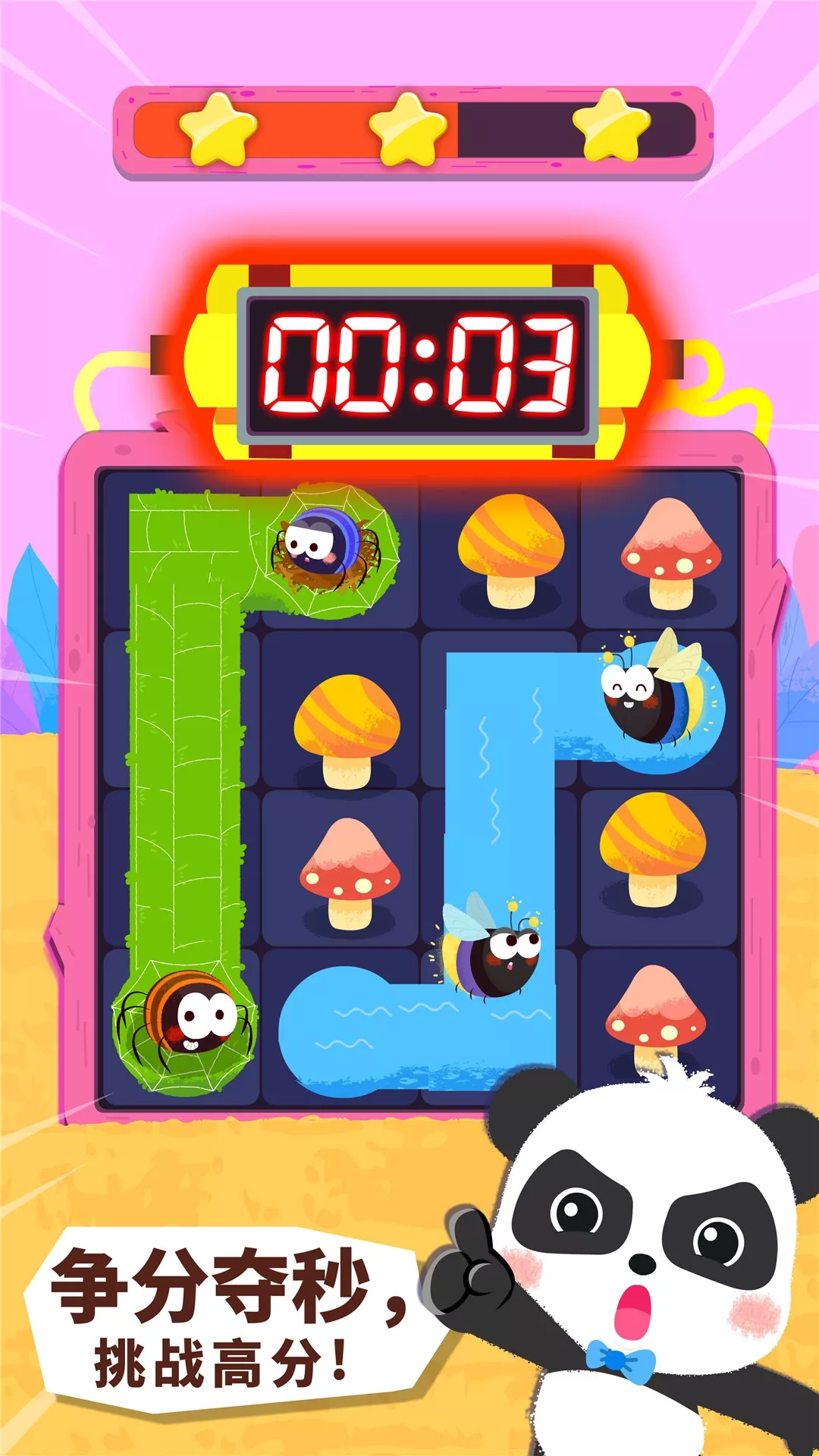 《奇妙连线达人》是一款旨在帮助4岁宝宝培养数学逻辑思维的早教益智APP。通过简单的连连看操作,锻炼孩子的空间思维和发散思维。 极地动物迷了路,丛林动物找不到食物,昆虫也和朋友分开了,整个世界陷入了大混乱!宝宝,快用你的小手指连线,指引小动物们找到它们的家园吧! 【产品内容】 3大主题场景: 极地、森林、昆虫世界,3大主题场景妙趣横生! 在雪原里为北极熊造冰屋;去丛林里采蘑菇;同蜜蜂进入蜂巢探险…… 宝宝,快来童话世界里大冒险吧! 3大场景,40+地图,趣味十足。 240个烧脑关卡: 蜘蛛被困在墙壁里了,指引它从缝隙里逃出来; 北极狐迷路了,送它回家,记得绕开路上的石头; 小兔子饿了么?穿过曲折洞窟,去找萝卜…… 240烧脑关卡,宝宝快来运用逻辑思维解决难题。 多角度,深层次开发宝宝数学潜能。 15只动物角色: 爱吃苹果的小刺猬、爱睡眠的北极熊、翱翔天空的小鸟…… 15位动物伙伴,Q萌可爱,个性鲜明! 它们将和宝宝一起探索童话世界,连线解决难题! 了解动物们的食性和习性。 通关剧情模式后,将解锁紧张刺激的挑战模式! 规定时间内,将小动物送回家,可以获得星星奖励! 宝宝,快来试试你能收集多少小星星吧! 【产品特色】 1.操作简单,滑动手指连接颜色相同的两点即可。 2.难度循序渐进,从易到难,培养宝宝的信心和数学学习积极性。 3.动物造型可爱,场景画风清新,符合儿童的喜好。 宝宝巴士从健康、语言、社会、科学、艺术五大领域关注幼儿成长,根据幼儿不同年龄段左右脑发育、敏感期特点和学习重点来设计产品,打造“年龄+能力”的教育产品体系。让孩子学会独立思考,享受探索世界的乐趣。 【宝宝巴士】是全球3.5亿家庭用户的早教选择! 【宝宝巴士】儿童早教app,众多儿童早教产品的一致选择,孩子从小学宝宝巴士、宝宝巴士儿歌、宝宝巴士奇妙屋、宝宝巴士乐园、宝宝超市、宝宝地震安全3、宝宝爱水果蔬菜、宝宝巴士汽车城、宝宝手工零食等使用者的一致推荐。 在【宝宝巴士】,我们自己也身为爸爸妈妈,所以非常重视儿童的健康和儿童的隐私。下载应用前,您可以从这里阅读我们的儿童隐私政策:http://cn.babybus.com/index/privacyPolicy.shtml _________ 欢迎联系: 微信:宝宝巴士 微博:@宝宝巴士 官网:http://www.babybus.com 邮箱:cn@babybus.com