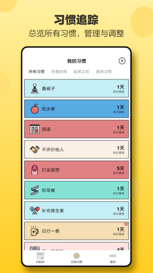 小习惯,习惯,习惯打卡,习惯养成,时间管理,自律,喝水提醒,闹钟,纪念日,倒数日,番茄钟,番茄todo,一个简洁的待办,日记,备忘录,记事本。 小日常是一个简单的习惯追踪、管理好自己时间的应用,拒绝拖延,坚持打卡。小日常致力于培养用户养成一个个好的习惯,改掉生活中的拖延症,每天坚持一点点,让自己更加自律。 做好每一天的计划,有计划的养成好习惯,记录下每天成长的笔记,成为一个备忘录,好看的如手账, 番茄钟帮你记录你每天的成长,一万小时,滴答,一个个滴答清单,成就自我。 每天给自己的习惯打卡,小小的每天坚持,才能成就梦想。 时间管理,每天目标学习计划打卡管理助手减肥健身吃饭柠檬喝水运动记录提醒事项软件,工作计划表番茄钟滴答清单珍惜时间规划局钉钉打卡时光序备忘录记事本timo手帐番茄ToDo极简待办万年历效率写日记 === 功能 === 1、每日打卡:轻轻一点,完成每日打卡 2、全部习惯:展示所有自己想养成的好习惯 3、习惯补签:再也不怕忘记打卡 4、添加习惯:自定义添加自己想养成的好习惯 5、每日一图:每日提供一张精美图片 6、番茄计时:计入每个习惯投入的时间