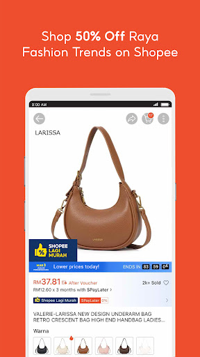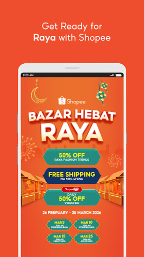 随着神圣的节日来临,Shopee 是您轻松便捷地购买开斋节必备商品的最佳选择,价格实惠,一键搞定!开斋节热销商品和新品补货,五折优惠,更有免运费(不设最低消费)以及每日五折 Shopee 直播优惠券,尽在我们的 Bazar Hebat Raya 开斋节特卖会,活动时间从 2 月 26 日至 3 月 25 日!<br><br>随时随地,轻松购物<br><br>• 浏览并轻松选购我们丰富的商品类别,包括健康美容、时尚配饰、手机及电子产品、汽车用品、家居生活、婴幼儿及玩具等等。<br><br>• 在 Shopee Mall 购买官方品牌的 100% 正品。<br><br>• 使用我们的返现券和惊喜大促,享受超值优惠。<br><br>• 参与我们的年度促销活动,例如 9.9 大促、11.11 大促和 12.12 生日大促,享受更多优惠和更低价格。<br><br>• 在超过 30,000 家精选店铺享受免运费(西马地区最高 5 公斤,东马地区最高 1 公斤)。<br><br>• 购物、每日签到等均可赚取 Shopee 金币,享受更多优惠。<br><br>• 在 ShopeeFood 订购美食,享受低廉的配送费。<br><br>• Shopee 马来西亚现已开通送货上门服务至文莱。<br><br>安全的在线购物环境<br><br>• 明智购物——查看卖家评分和评价。评价<br><br>• 无风险支付 - Shopee Guarantee 仅在确认收到订单后才会放款<br><br>• 强大的物流支持 - 通过最新的物流信息,全程追踪您的订单,从付款到收货<br><br>无缝结账和安全支付方式<br><br>• 激活应用内 ShopeePay 电子钱包,享受无缝结账体验,并享受 ShopeePay 专属优惠和返现<br><br>• 通过我们直观的界面,体验快捷便利的购物流程<br><br>• 使用您喜欢的支付方式进行交易 - 银行转账、信用卡或借记卡、Apple Pay、货到付款 (COD) 或在便利店现金支付<br><br>• 使用 SPayLater 先买后付,享受长达 12 个月的分期付款<br><br>• 选择从指定 Shopee Mall 品牌门店到店自提<br><br>*SPayLater(包括下月付款和分期付款选项)是一种为用户提供灵活支付方式的融资解决方案。 SPayLater 已获得 Amanie Advisors(简称“Amanie”)的伊斯兰教法合规认证。Amanie 是一家全球伊斯兰教法咨询公司,也是马来西亚证券委员会 (SC) 注册的伊斯兰教法咨询公司。<br><br>每月将收取订单总额 1.5% 的手续费。如未在规定时间内付款,将收取 10 马币的滞纳金,并且 SPayLater 和/或 Shopee 账户将被暂停。<br><br>SLoan 由 SeaMoney Capital Malaysia Sdn Bhd 提供,该公司已获得马来西亚地方政府发展部 (KPKT) 根据 1951 年《放贷人法令》颁发的放贷许可证(许可证号:WL7728/14/01-2/240225)。 SLoan 的主要优势如下:<br><br>1. 快速激活、审批和发放最高 20,000 马币的现金贷款<br><br>2. 分期付款期限为 3 至 24 个月<br><br>3. 极具竞争力的月利率 1.5%<br><br>最高年利率 = 18%<br><br>贷款示例:<br><br>贷款金额 = 1,000 马币<br><br>印花税 = 0.5% * 1,000 马币 = 5 马币<br><br>认证费 = 5 马币<br><br>贷款发放金额 = 1,000 马币 - 5 马币 - 5 马币 = 990 马币<br><br>贷款期限 = 3 个月<br><br>利息金额 = 3 * 1.5% * 1,000 马币 = 45 马币<br><br>总还款额 = 1,000 马币 + 45 马币 = 1,045 马币<br><br>每月还款额 = RM1,045/3 = RM348.33<br><br>地址:吉隆坡谷中城,Lingkaran Syed Putra,South Point Tower 25楼,邮编:59200<br><br>在线购物APP亮点<br><br>• 按类别、品牌和位置搜索<br><br>• APP专属优惠和每日特价通知<br><br>• 个性化产品推荐<br><br>• 用户评分和评论<br><br>• 购物和每日签到即可赚取Shopee金币<br><br>• 订单追踪<br><br>• Shopee Guarantee 100%保障<br><br>• 更多精彩功能即将上线<br><br>-------------------<br><br>欢迎留言反馈!<br><br>访问我们的网站:www.shopee.com.my<br><br>在 Facebook 上关注我们:facebook.com/ShopeeMY<br><br>在 Instagram 上关注我们:@shopee_my<br><br>在 TikTok 上使用标签 #MYShopeeCheck 并@shopeemy<br><br>查看我们的博客:https://shopee.com.my/blog/