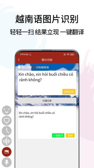 《越南语翻译通》App是一款支持越南语翻译和越南语学习的工具软件。它支持中越英三门语言的文字翻译、语音翻译、拍照翻译、语音识别、图片识别、文字转语音、语音转文字等功能,堪称全能越南语翻译官。 《越南语翻译通》App还支持越语词典查单词、日常用语主题词汇、零基础入门字母发音练习、艾宾浩斯记忆曲线背单词、随身听力强化训练、阅读学习专栏等学习功能,帮助大家利用碎片化时间轻松掌握越南语。目前已经更新《基础越南语词汇》、《越南语分类词汇》、《实用越南语教程词汇》《常见越南语单词》《常见越南语成语俗语》等实用越南语词书。 【翻译功能】 • 文字翻译 | 越南语中文英文互译,翻译准确,错误少; • 语音翻译 | 面对面说话翻译,你一句我一句同声传译; • 拍照翻译 | 拍照上传图片即可识别越南文,图片翻译; • 语音识别 | 高精度语音识别技术,发音不标准也可以; • 图片识别 | 上传照片提取文字内容,便捷整理长文本; • 文字转语音 | 输入越南文字即可智能发音,媲美真人; 【学习功能】 • 科学背单词 | 艾宾浩斯记忆曲线背单词学习模式; • 越南语词库 | 持续更新从入门到精通的越南