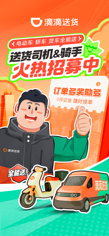 滴滴出行开始做送货啦,抢先试用滴滴送货司机版,开始赚钱! 滴滴送货是滴滴推出的全新同城送货业务,作为送货业务的司机版,我们精心提供了更为完善的送货功能,使司机更放心,更便捷的接单上路。 海量订单:来自滴滴的千万级用户,为您提供源源不断的订单,点击“开始听单“,接受来自周边的订单,接到手软吧。 真实保障:拒绝“假保险”,我们为每一位司机和每一份货物都提供了全面保障,保障您和用户的各项权益。 实时提现:赚多少清晰可见,详情明细便捷查询。绑定银行卡后提现瞬间到账,一天功夫一天算。 体贴透明:起点终点可见,全程语音导航,订单直接推送上屏,体贴关怀,我们懂你。 推荐司机朋友加入滴滴送货,一起来赚钱吧! 滴滴送货,全新起航! 我们重视您的反馈,如有意见建议,请与我们联系。