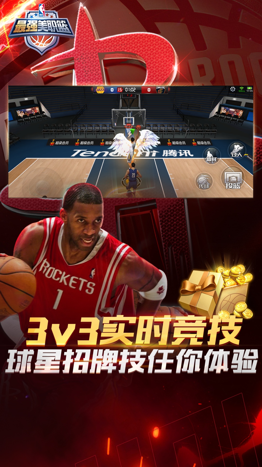 正版授权 真实球星 <br>首款NBA正版授权的竞技动作篮球手游,真实还原现役与名人堂传奇NBA球星形象,完美复刻经典动作。真实现场大牌解说,再现巅峰对决的时刻。 <br>经典对决 极速秒配 <br>自由匹配,快速开局!流畅的实时竞技,让NBA的经典对决,在你我之间触发 <br>好友开黑 团队荣耀 <br>随时随地与好友开黑比赛,在手机的战场上挥洒青春与热血,阳光耍帅,要自信,要“最强”! <br>丰富模式 大作风范 <br>三五分钟来场比赛,携手挑战顶峰,闯关锻炼身手,赏金验证实力,最强NBA适合最NB的你! <br>炫酷特效 无限可能 <br>游戏世界里NBA更酷炫,各路高手齐聚殿堂,期待在游戏中的炫酷表现!