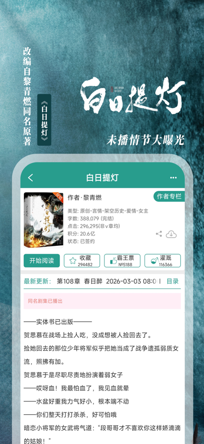 【全本好书】畅读畅听全本小说、都市重生、现言古言、影视小说、出版小说、有声小说等等应有尽有 【简洁流畅】操作简单,支持本地阅读、边听边读、自动阅读、夜间模式等,给你纯净体验 【丰富榜单】推荐榜阅读榜高分榜完本榜帮你找到好书