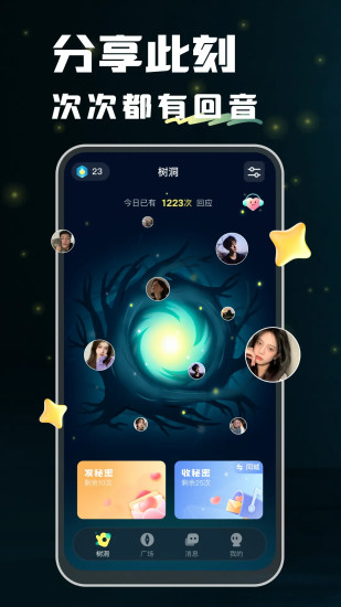 在这个世界上,有很多人和我一样,不是引人瞩目的幸运儿。 我们是人群中的小透明, 我们有很多话想讲,但却总也没人来问, 我们害怕社交的压力,宁愿选择自己承受孤独, 我们习惯着伪装合群,总是因为照顾别人情绪而小心翼翼, 渐渐的,我们学会了忍耐,却不曾想根本没人赞颂沉默。 我们也渴望陪伴,渴望被关注,可我们害怕陪伴带来的压力,害怕关注带来的目光。 回音提供纯匿名的社交方式,你可以完全放飞自我,可以随性倾诉生活的日常。 在这里你总能碰到与你兴趣相投的人,让你体会与人分享的愉悦,却又没有社交压力。 如果你也有无处诉说,却不愿藏匿的心事,就把它放进树洞里吧。你的每一次发声,都 会被温柔对待。 功能介绍: 「温暖树洞」 向树洞分享你的想法,即刻便能收到回应,满足你的分享欲。 「匿名社交」 树洞遇见的人,都是匿名状态,没有年龄、外貌、身份的压力,让我们用灵魂遇见彼此。 「记录生活」 无压力记录生活瞬间,表达真实的自我,只有同频的人才能看到。