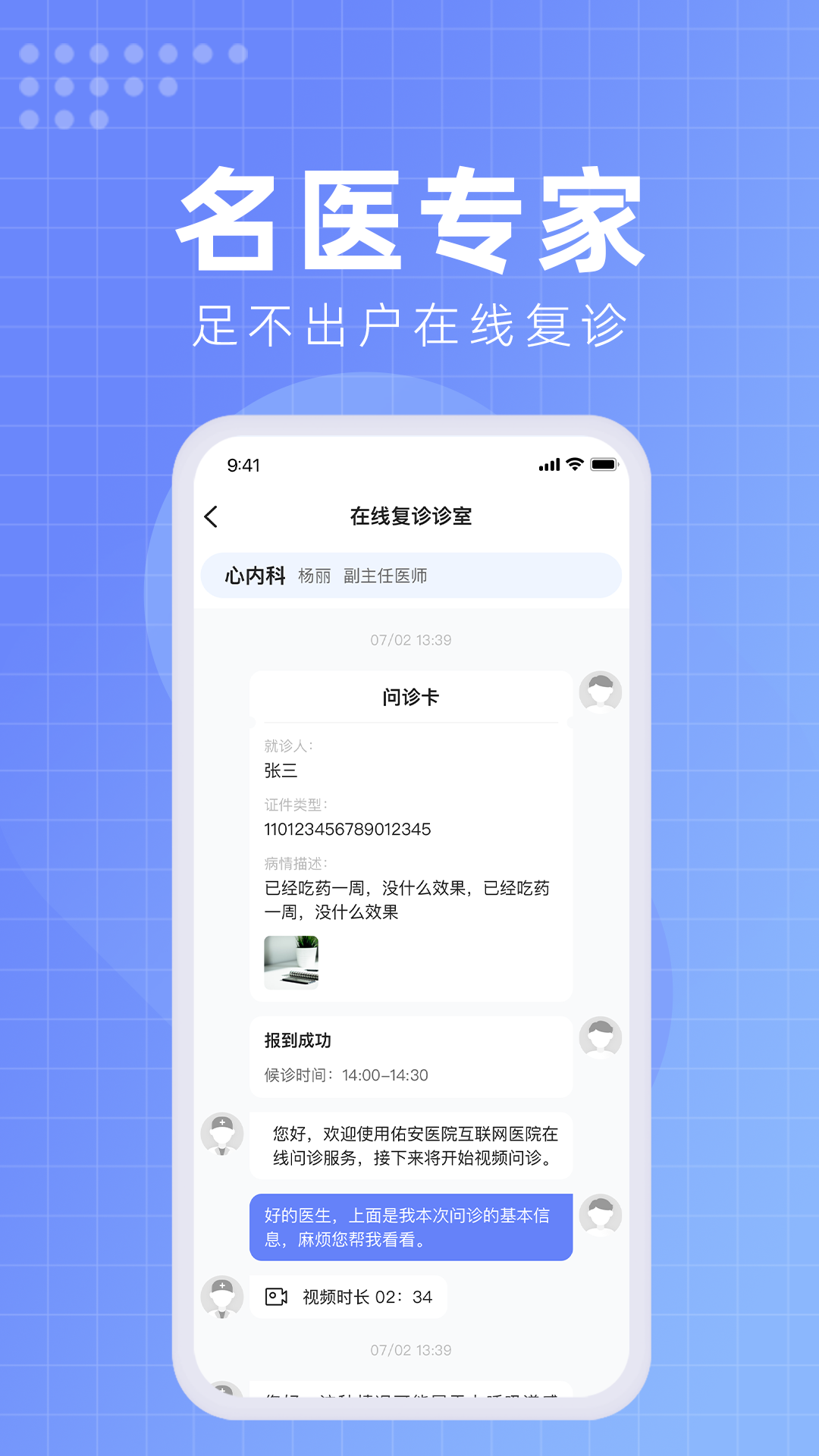 北京佑安医院 互联网医院正式上线! 足不出户,通过互联网在线复诊,医生与患者可进行图文、语音、视频等实时沟通,极大提高患者就医效率,还能更便捷的在线进行诊断,将药品配送到家。 在线问诊 名医一对一,方便放心 名医专家 足不出户在线复诊 开药续方 药品快递配送到家 报告查询 检查检验报告线上查看