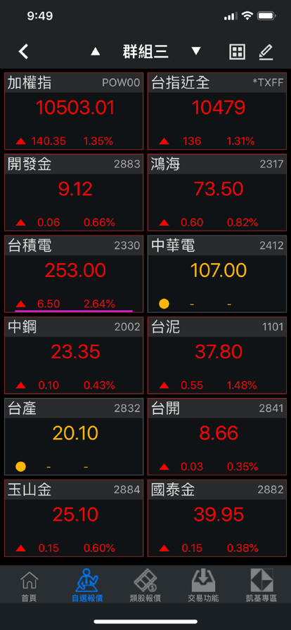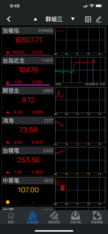 凱基證券提供iPhone平台專屬股票看盤軟體【隨身營業員-iPhone】版;簡易的操作介面及豐富的報價資訊,讓您可以快速查詢最新報價資訊。 系統特色: -提供證、期、權、國際指數、外匯、美國個股、國際期貨即時報價資訊。 -提供完整財經新聞、大盤盤後資訊及個股盤後資訊。 -個人化專屬自選報價功能,提供五個群組,150檔商品設定功能。 -直覺式操作方式,一指查詢所有金融資訊。 -使用3G連線,報價速度與交易所同步。 系統功能: -即時走勢:支援查價線及橫置顯示功能。 -五檔價量:提供最佳五檔及報價明細功能。 -分時明細:提供商品分時明細報價功能 -分價量表:提供商品分價報價功能 -技術線圖:支援5分鐘、60分鐘、日、周、月線圖,可觸控指標切換成交量、RSI、KD、MACD、PSY等技術指標,並切換橫置顯示。 免責聲明: -本服務資訊來源 (包括但不限於)台灣證券交易所、台灣期貨交易所、櫃檯買賣中心。而本服務內容僅為提供資訊服務,本服務對於所有經由本服務傳送之資訊之正確性與適用性均不負擔任何責任,並不保證所有資訊之準確,對於任何不準確或錯漏而引致之任何損失均不負任何賠償責任。 -本服務所提供之所有資訊及其相關任何功能目的為提供資訊,非供交易或投資之目的, 透過本服務獲得之資料僅作為參考 ,非供貴使用者之投資買賣建議,基於前開資料之任何交易或投資決定,貴使用者須自負風險及盈虧,本服務亦不負任何責任。 -本服務不保證本服務之無誤及不中斷。本服務倘若出現傳輸中斷或故障等現象,造成貴使用者使用上的不便或無法使用、資料喪失、錯誤、遭人篡改或其他經濟上損失等情形,本服務不負任何賠償責任 。