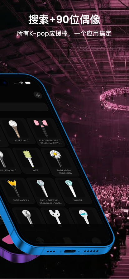 使用这个应用程序,无需沉重的应援棒,随时随地为你喜欢的偶像加油吧! 在偶像演唱会、KCON、Melon Music Awards、Dream Concert等各种舞台上都可以方便地使用。当因为应援棒售罄而无法购买到自己偶像的应援棒时,在KTV里,或者观看其他偶像的舞台时,即使没有该偶像的应援棒,也可以通过这个应用程序进行精彩的应援。 在挥动手机为偶像加油的那一刻,你的应援会传递给偶像。体验你应援传达的那一刻吧! 注意:如有侵犯版权的情况,请告知我们,我们会尽快删除。 # 该应用程序内的Kpop偶像艺人 (English) blackpink, stray kids, (g)idle, BTS, newjeans, tomorrowxtogether(txt), twice, LESSERAFIM, ive, seventeen, aespa, nct, nmixx, enhypen, girl's generation, mamamoo, red velvet, ATEEZ, the boys, astro, stayc, exo, lee chae yeon, yoonha, cravity, billie, lee chan won, btob, treasure, fromis9, Im Youngwoong, bol4, nflying, wannaone, iu, day6, kep1er, xdinary heroes, apink, got7, pentagon, revolution heart, itzy, izone, SHINee, YENA, Dream Catcher, PSY, BoA, MONSTA X, CLASS:y, OH MY GIRL, momoland, WJSN, P1Harmony, CherryBullet, CHUNG HA, VIVIZ, LIMELIGHT, Forestella, GFRIEND, 2PM, 2ne1, LOONA, CHUU, WayV, ZB1, INFINITE, Super Junior, Icon, B.I, I.O.I, AOA, ONEUS, god, CIX, TEMPEST, Lovelyz, Kim Sejeong, Hwang Minhyun, TVXQ, &TEAM, NiziU, X:IN, VIXX, VICTON, AB6IX, BIGBANG, Rocket Punch, Samuel, YOUNGTAK, Park Bo Gum, Kwon Eunbi, Epik high, Lee Mu Jin, SHINHWA, SECHSKIES, EPEX, b1a4, EVNNE, Jeong Dongwon, BOYNEXTDOOR, WINNER, PLAVE, T1, TWS, 4minute, RIIZE, WONHO, KISS OF LIFE, QWER, KIMJUNSU, SUNMI, tripleS, CNBLUE, ONE PACT, KIM WOOJIN, B.A.P, Kang Daniel, Block B, Kim Wooseok, Loossemble, xikers, XODIAC, KYUHYUN, XG, KIM JAE JOONG, Golden Child, NCT WISH, WonderGirls, DRIPPIN, Junghaein