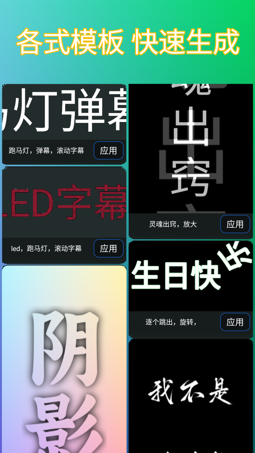 【应用简介】<br>- LED字幕屏是一款根据生活所需设计的免费LED显示屏工具;<br>- 无后台启动,不偷流量,不盗隐私,不耗内存;<br>- 操作简单,启动速度快,占用内存极小;<br>- 界面简洁、大方、实用;<br>- 支持从Android 1.5以上的所有版本,兼容性超好;<br>- 大家再也不用担心没有随身携带LED显示设备!<br>- 表情达意,火车站/机场接人,演唱会/节目打call等等场景,是你想show想表达的实用工具!<br><br>【核心功能】<br>1、可随心且方便的调节背景和前景字体颜色,所见即所得;<br>2、提供了更加简单易操作的颜色选取器,支持所有色域;<br>3、文字粗细以及大小任你调,自适应支持各种大小的屏幕;<br>4、移动速度快慢任你调,智能算法帮助文字动效丝滑般流畅;<br>5、支持文字各个方向滑动以及静止状态的展示,手机秒变为漂亮的名片;<br>6、支持设置的存档功能。