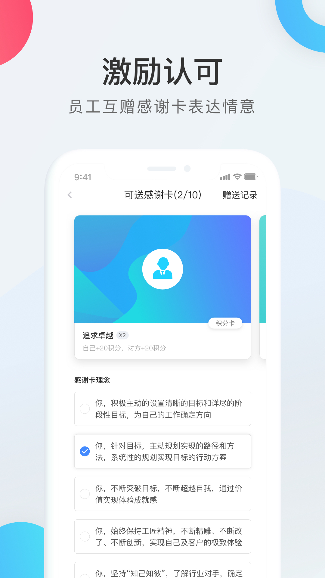 WorkLife,是CDP集团EcoSaaS平台的移动端应用,WorkLife充分体现了 “未来科技+人文关爱”的服务理念,全方位连接员工自助与沟通、激励认可、薪资考勤、弹性福利、健康管理、美好生活等微应用,灵活易用的SaaS系统,助力企业高效沟通与管理。通过科技与服务的结合,实现 “未来工作”,“未来生活”,“未来管理”。 未来工作: 【员工自助】提供考勤、请假、出差、日志、资讯公告等功能,全面实现智能移动办公。 【通讯录】支持批量导入员工信息并统一管理,找同事更方便。 【激励认可】线上感谢卡,同事间可第一时间表达感谢。 【私密薪资单】薪资单不再像快递一样进行传递,由HR直接发送到员工账号。 未来生活: 【弹性福利】提供吃喝玩乐、衣食住行等全场景的线上线下积分制员工弹性福利服务。 【商业保险】为您和您的家人提供过更加灵活、丰富和全面的保障计划。 【健康体检】公司付费套餐、个人自费升级套餐、家属套餐在线预约,为员工及家人的健康保驾护航。 WorkLife拥有强大的安全与管理: 【全面安全保障】采用阿里云加密技术对企业数据进行加密保护,为企业数据安全提供可靠保障。 【丰富的配置】企业配置权限管理、微应用管理、报表权限管理、HR权限管理等,个性化配置自己的WorkLife。 WorkLife服务热线:4006700075。
