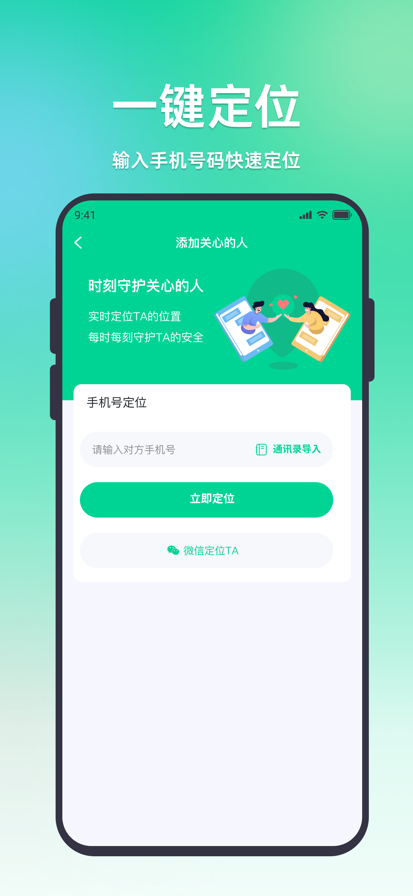 精准定位,实时追踪运动轨迹,了解Ta在哪里,去过哪里,守护Ta的安全! 黑科技!双方添加好友,通过好友手机号定位,只要输入对方手机号码,成功并打开“位置”权限即可追踪定位,24H实时精准定位,获取对方位置,不用再问“你在哪儿?”。 [产品特色] - 添加好友,实时位置、历史足迹查看; - 所有功能完全免费,放心使用,无消费陷阱; - 时刻守护:实时记录TA的移动轨迹,正在哪、去过哪,一看便知! - 后台持续定位:即使好友关闭App也能看到TA的位置! [使用场景] - 朋友结伴出行集合,夫妻情侣间位置共享,异地恋人位置分享; - 保护小孩上学、放学路上,有没有在网吧、娱乐场等地方逗留?有没有偏离正常路线?安全守护,防走失; - 了解家中长者行程,保护父母/老人家日常出行、旅游安全; - 想实时了解关心的TA在哪,去哪了?比如:老婆去哪了?女友去哪了?老人去哪了?孩子去哪了?同事去哪了?员工去哪了?驴友去哪了?朋友去哪了?用定位找人软件,不用打电话,快速定位,马上知道TA在哪儿! [使用须知] - 手机号查找定位,需该号码注册使用本软件,且仅限已添加好友的双方查找使用; - 添加好友,需要对方同意并确认; - 本定位找人软件暂仅支持iOS设备用户使用; - 定位功能须双方添加好友并正确打开“始终允许”访问定位权限,方可使用,不涉及侵犯个人隐私; - 用户开启始终“后台定位”权限后,持续后台定位功能会加大电池电量的损耗,可能影响电池寿命; - 定位是一款基于高德地图的安全定位查询app,专为好友、家庭安全设计,帮助家人和朋友时刻保持联系,添加好友后即可关注对方。 - 获取地理信息必须在用户/好友双方知情并同意的情况下进行,请在下载前知晓。特别强调:只能自己使用,不能使用本软件协助他人获取其他人的位置;只能用于家人朋友之间,不能用于非家人朋友和陌生人之间;不允许非法使用本软件,只能用于家人或者亲人之间,不允许用于其他用途以免侵犯隐私。