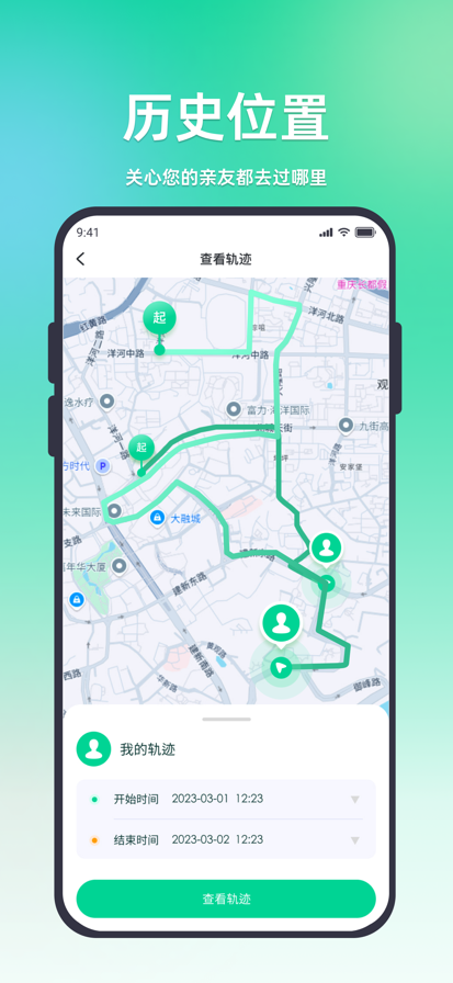 超1200万人使用的定位找人软件,亲友位置和轨迹查看软件; 时刻掌握行踪,守护TA的安全。 我们为什么要研发这款软件? 异地情侣总是担心对方是否在家是否安全,你想时刻守护伴侣安全,你该怎么办?家人的安全始终是我们关心的事情,家中的老人和小孩更是丢失的高危群体。当家中老人孩子电话不接,消息不回,你完全不知道他们在哪里,这时你该怎么办?孩子寄宿上学,你每天都不在孩子身边,想知道他是否每天都在学校还是出去玩耍了,你该怎么办?安排家中老人小孩出去旅行,你想时刻知道旅行团的出行轨迹,一旦旅行出问题你能是马上知道他们位置吗?爱人或者同事出差想把控出差位置和线路轨迹,能否及时知道是否到达指定地点呢? Tracking能够完美的解决以上问题,通过手机后台实时定位技术、历史路线回顾技术、到达和离开具体位置提醒技术,让你对一切都了如指掌。 软件提供的主要功能如下: 1.查看手机的实时位置,知道对方现在在哪里。 2.查看对方网络状态,判断是在室内还是室外。 3.您可以回顾过去30天对方去过的地方。 4.你可以记录自己去过的位置,方便以后回顾。 5.当家人朋友到达和离开指定位置的时候你就能收到提醒。 软件的主要用途有: 1.情侣定位:情侣之间相互关心,时刻知道对方位置知道对方是否安全。 2.老人小孩防丢,当孩子不在身边的时候能时刻关注孩子的位置,如果找不到还在也能查看孩子的历史轨迹,时刻守护家人安全。 3.密友圈使用该软件,和你的好友时刻保持链接,随时查找朋友。 4.外勤人员使用,通过实时定位追踪和位置记录保障员工安全和记录工作位置。 5.查找我的iPhone,如果我的手机丢失,我们软件提供了比苹果自带软件更精准的定位和更详细的历史数据。 6.其他更多用途让你了解位置,多一份心安。 现在邀请家人朋友一起使用该软件,你就能时刻掌握家人的位置和历史轨迹,对方进入和离开你指定的地方你都能收到提醒。 关于软件耗电:我们针对不同的手机待机情况提供了两种定位模式。1.省电模式:如果您的手机电池容量不高,或者平时不能随时充电,建议选择省电模式,这种模式下手机停止移动的时候(比如在家或者办公室)是不会记录位置信息的,当再次移动的时候才会继续记录位置信息。2.如果您的手机电池容量高待机时间长或者平时充电比较方便,建议选择高精度定位模式,这种模式会24小时不间断记录位置信息,你能获得更精确的手机定位数据。 目前我们已经做到了软件体积小,耗电少,功能运行稳定等技术积累我们也将不断努你听起用户建议,不断优化和打磨产品。如您有任何使用问题和建议以及商务合作可以随时联系我们,联系方式如下: 联系邮箱:applecounts2@163.com 期待您的建议! 特别提示:Tracking在后台持续使用位置时会较多的使用电池电量,有可能降低电池使用寿命。请合理选择定位模式。