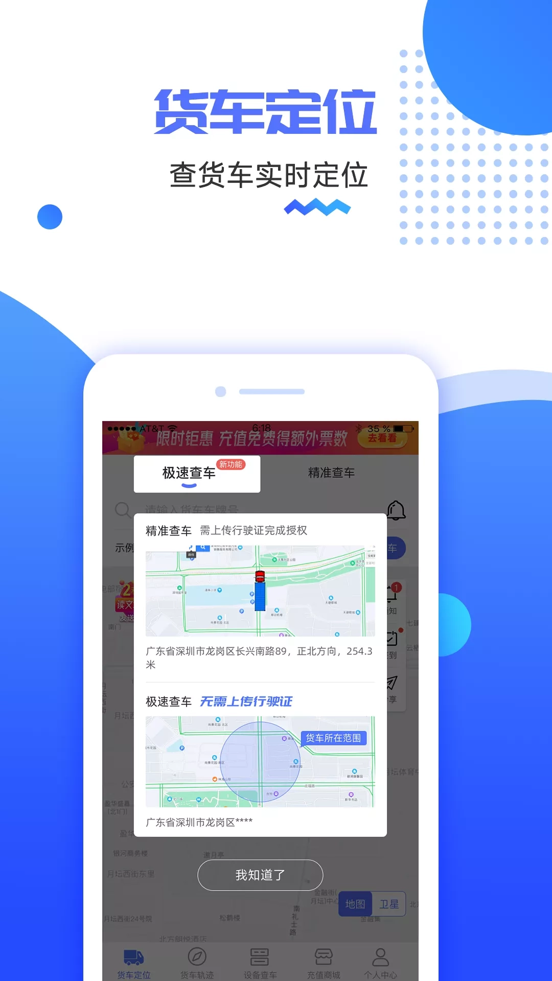 货车定位-查货车位置轨迹 《新用户注册免费查》 【应用简介】 货车定位APP是海管家旗下一款查询货运车辆实时位置、行驶轨迹、违章查询提前规划货车导航的产品。用卫星GPS定位取代了传统的电话沟通,实时监控货车位置,减少货车司机因接听电话而引发的交通事故,同时也让工作更轻松便捷,定位货车帮您货运满满,一路好运。 【功能描述】 √货车定位:查询全国范围内安装了卫星GPS定位的黄牌运输货车、运输卡车、集卡车、拖车、半挂车等货运车辆,方便物流企业、货主、车主、货车司机、大卡车司机随时定位车辆位置 √货车轨迹:支持查询半年内货车的行驶轨迹 √货运险:全国物流运输保险,保障范围广,费率低至万分之一,保额高至1000万,秒出保单,理赔便捷。 √水印相机:货运司机拍照打卡好助手,司机货运途中拍照打卡证明真实性,所拍照片自动加上时间、日期、实时定位等水印,真实防篡改。 √定位分享:分享授权给对方,对方可以实时关注货车位置。如:车主、车队、物流公司可以在发货前通过该功能分享拉货的货车动态、实时定位给货主,省去电话沟通货到哪了的烦恼 √高清地图:高清卫星地图,支持查看实时路况、高速路况,方便货运车司机提前