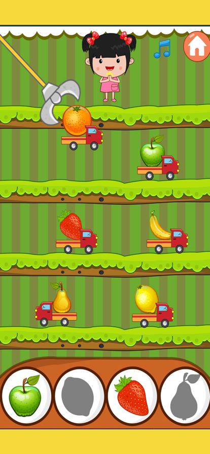 1.小朋友都喜欢抓娃娃机,这个是抓水果蔬菜的娃娃机游戏机,很有童趣,很好玩喔! 2.操作简单,在钩子摇摆的过程中,瞄准物品,点击物品时即会释出钩去抓取物品。 3.游戏开始有两个选项,一个是蔬菜,一个是水果,进入不同的选项游戏的物品不同喔!