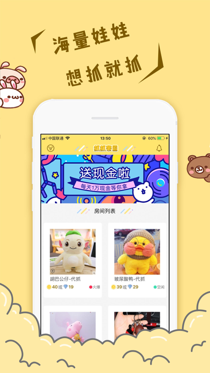 -多方位视角观察,毫秒级延迟领先,更有福利瞄准工具助你更快更准更狠,让你抓得更多。 -抓抓星球所有产品均可快递到家,享受宅家拆快递的快感,完善贴心的客服MM,帮你解决各种问题。 -各种网红萌娃、实用家居、心水美妆应有尽有,紧张的日常活动,每天给你新鲜感和幸福感。 -不定时的娃娃大赛,女神秀绝技,众人来膜拜,轻松愉快的氛围带给你更幸福的体验。