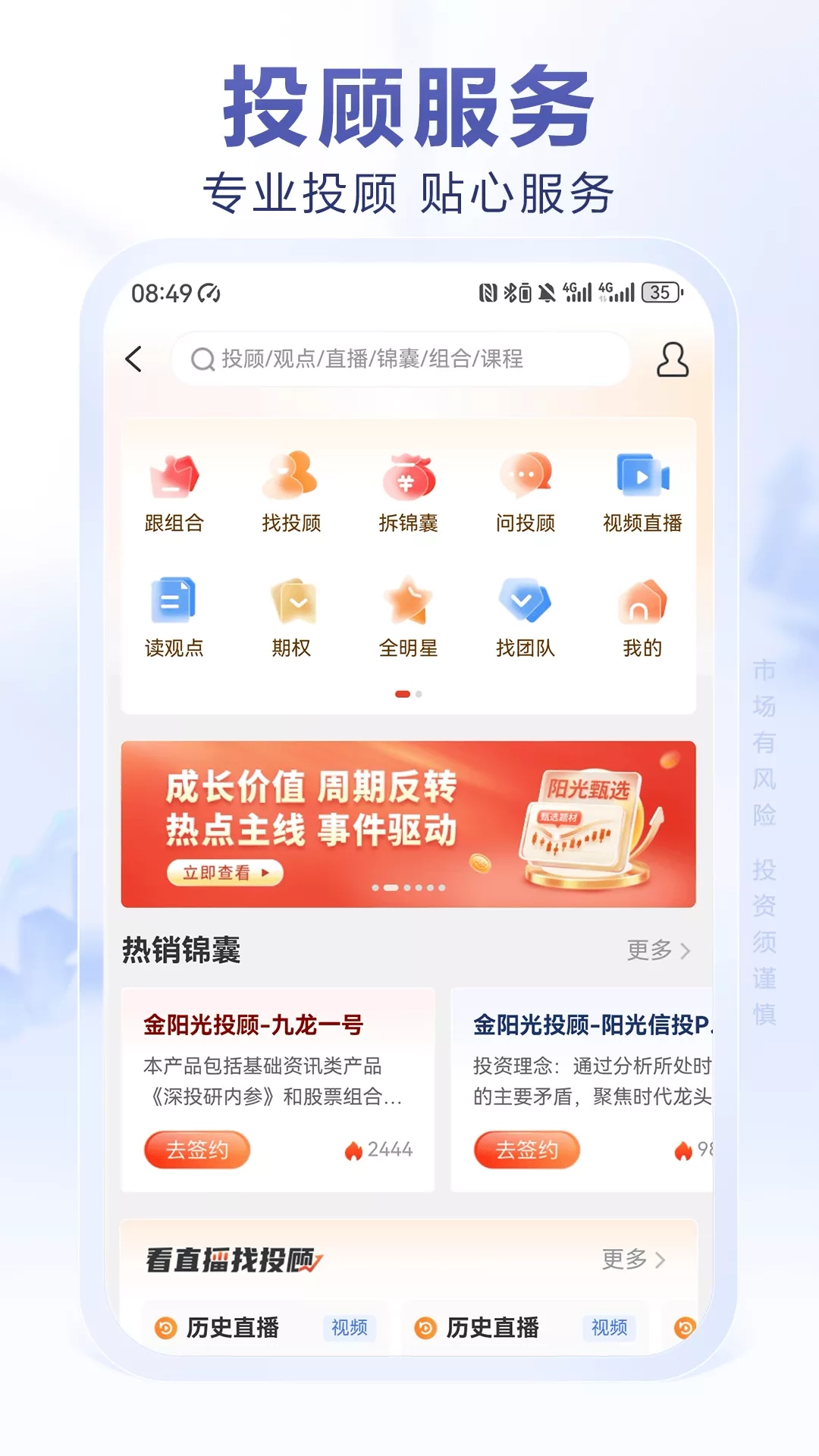 光大证券股份有限公司是A+H两地上市公司,是世界500强企业中国光大集团股份公司(简称“光大集团”)的核心金融服务平台之一。 光大证券金阳光APP是由光大证券自主研发的股票交易和分析软件,提供交易、行情、资讯、社区、基金等一站式投资理财服务,是专业伴你成长的投资理财助手。 【8.0全新体验 8大功能升级上线】 1、行情升级—极速行情,洞察先机 行情支持更多品种,新增中证指数行情;分时、k线主图及副图支持更多指标,指标更丰富。 新增停牌标签、关联行情、股息等财务指标,盘口更全面;新增筹码分布、分时k线叠加、横屏画线、区间统计,工具更多样。 30+自定义设计项,设置更灵活;行情界面一键买卖撤,交易更便捷。 2、交易升级—智能交易,把握良机 反弹买入、回落卖出、定价卖出、智能条件单等13大策略助力,无需盯盘也能锁定交易时机。 3、投资升级—ETF专区,投资有道 ETF投资热点、行情榜单、资讯,聚焦ETF投资机会。 4、资讯升级—自选资讯,一目了然 新闻、公告、研报、问董秘、大事提醒,自选资讯全方位呈现。 5、理财升级—精选理财,攻守兼备 新增个人养老金专区,一站式账户开通、投资理财、养老投教,为您的养老规划保驾护航。 6、服务升级—专业投顾,贴心服务 新增算法产品线上签约,多样化服务渠道、200+专业投顾产品任您选择。 7、搜索升级—随心搜索,看您想看 支持功能检索、持仓个股基金检索、股票按品种检索。 新增金阳光热搜榜,快速追踪风口热点。 8、关怀升级—长辈模式,关怀备至 行情、自选股全面适配长辈模式,字体更大,操作更便捷。 【新客权益】 新客户通过光大证券金阳光APP开立证券账户,可体验年化收益率6.X%新客专享理财产品、12个月高端行情Level-2、3个月神奇九转决策工具等开户权益! 立即下载光大证券金阳光APP,开启8.0智能投资理财之旅。如果您对我们的软件有任何建议或者在使用过程中遇到任何问题,欢迎联系我们。 客服热线:95525 官方微信:光大证券(ebscn-95525) 温馨提示:投资有风险,入市需谨慎