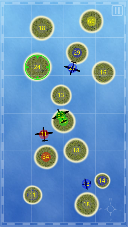 这是一个令人上瘾的战略游戏!你需要打败你的对手和捕获所有的岛屿。 你的目标是占领地图上所有的岛屿。 点击蓝色的岛屿(代表你自己)以选中它,然后再点击红色的岛屿,这样你的部队就会被指派到那里。 你可能需要连续指派多次部队才能占领一座岛屿。每次指派部队的数量都等于当前岛屿部队总量的一半。 余下的一半将会驻留该岛以防守。 有时候先占领一座中立岛屿再向敌对岛屿发起进攻效果更好。 带有灰圈都是中立岛屿,把你的部队派往那里吧。岛屿越大就能驻守更多的部队,并且部队的增加速度也会越快。 你可以从你的多个岛屿同时派兵进攻敌对岛屿。 用手指在屏幕上划出一个框可以同时选中复数的岛屿(使用鼠标时操作方式也是一样的). 你可以和多个电脑对手一起进行游戏。 他们可能会联合起来对付你,你也可以和其中一方联合起来对付其他的。 在战役模式中,你将始终控制蓝色的一方,并且没有盟友会帮你。 在单人模式中,你可以设置队伍的配比和颜色。 在教学模式中绿色的玩家是你的盟友,与它一起击败敌人来完成教学模式吧。