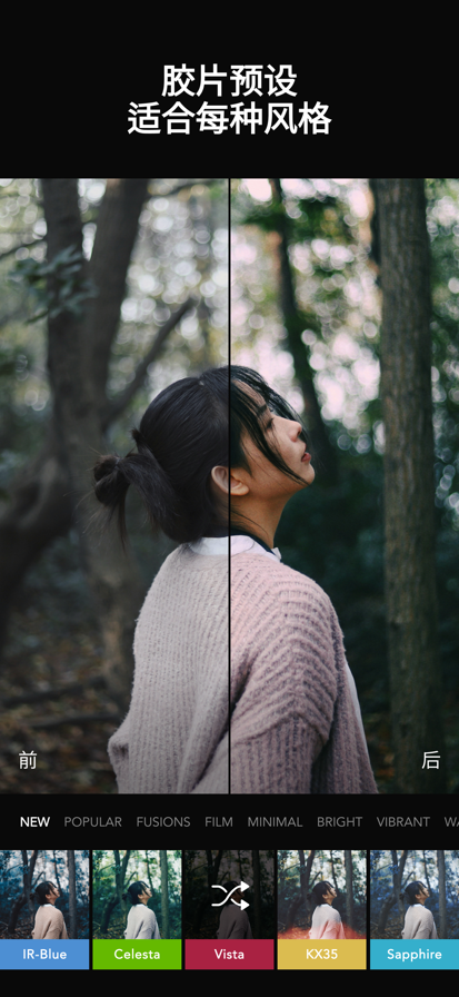 Afterlight 由一支小型独立的摄影师和艺术家团队打造,深度致力于设计真实的 Presets、特效和叠加层,由真正使用它们的人制作。 - 300+ 胶片风格 PRESETS 用丰富的一键胶片 Presets 为你的照片增添个性,灵感来源于真实的胶片摄影。我们的 Presets 旨在模拟 Kodak Gold、Portra、Agfa Vista 和一次性相机等真实胶片的效果。结合特效和工具,创建你自己的专属风格,打造 Fusion Filter。 - 惊艳胶片特效 运用独特的胶片模拟技术,如多重曝光,添加 Halation 的温暖光晕,用 Color Shift 调整 RGB 通道,以及用 Chroma 创造色差效果。 - 100+ 真实叠加层 用我们丰富的叠加纹理选择为你的照片添加有趣的收尾效果。体验用真实35mm胶片制作的正宗Light Leaks、自然灰尘纹理、复古纸张和VHS效果。 - 30+ 高级编辑工具 全面掌控照片的亮度、对比度、饱和度和锐度,并使用纹理、光晕、颗粒、曲线、清晰度、暗角等更多功能添加细节。 - 边框与相框 导出编辑前,用彩色边框增添独特风格,或应用拍立得相框并搭配你自己的背景图片。 - 真正的隐私保护 我们不收集、存储或分享你的任何数据。你编辑的照片永远属于你。 使用条款和隐私政策:https://afterlight.co/privacy 有疑问?联系我们:https://afterlight.co/support Instagram: @afterlight