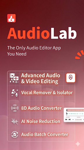 <b>AudioLab - 你需要的唯一一款音频编辑器应用</b><br><br>编辑、录制和创作音频 - 一站式应用<br><br>AudioLab 是一款功能强大的音频编辑器和录音机,专为希望在 Android 设备上编辑音频、录制语音、剪辑 MP3 或创建自定义铃声的用户而设计。无论您是编辑音乐、录制语音备忘录、制作播客还是创建铃声,AudioLab 都能在一个简单易用的应用中提供专业的音频工具。<br><br>从快速剪辑到高级编辑和转换,AudioLab 只需轻点几下即可将原始声音转化为精美的音频。<br><br>🎧 音频编辑器和 MP3 剪辑器<br><br>使用简洁直观的音频编辑器,精准编辑音频文件。<br><br>● 剪切、修剪、分割和合并音轨<br><br>● 歌曲、语音片段和音乐文件的 MP3 剪辑器<br><br>● 精确修剪音频并保存最佳部分<br><br>● 将多个音频文件合并为一个<br><br>● 编辑音乐轨道而不损失音质<br><br>立即试用 AudioLab,打造您的完美音效!<br><br>🎙️ 语音录音机和音频录音机<br><br>使用内置的语音录音机和音频录音机,捕捉清晰、高品质的声音。<br><br>● 录制语音、音乐、播客和会议<br><br>● 调节音量并提升清晰度<br><br>● 即时保存录音,稍后编辑<br><br>非常适合学生、内容创作者和日常录音需求。<br><br>🔄 音频转换器和 MP3 转换器<br><br>使用 AudioLab 的音频转换器,快速轻松地转换音频文件。<br><br>● 在 MP3、WAV、AAC、FLAC、M4A 等格式之间转换<br><br>● 压缩音频文件,方便分享<br><br>● 将视频转换为音频并从视频中提取声音<br><br>轻松管理手机上的多种音频格式。<br><br>🎶 音乐制作器、歌曲制作器和节拍工具<br><br>使用 AudioLab 的创意工具创作和尝试各种声音。<br><br>● 混合多个音轨<br><br>● 调整速度、音调和节奏<br><br>● 创建歌曲、混音和基础节拍<br><br>● 使用均衡器和音效增强音频<br><br>AudioLab 是一款轻量级的音乐制作和歌曲制作工具,可快速记录灵感并进行编辑。<br><br>🔔 铃声制作和音频自定义<br><br>将任何音频文件转换为自定义铃声或通知音。<br><br>● 从歌曲或录音创建铃声<br><br>● 将音频设置为铃声、闹钟或通知音<br><br>● 轻松编辑铃声长度和音量<br><br>用符合您风格的声音个性化您的手机。<br><br>为什么选择 AudioLab?<br><br>● 集音频编辑器、录音机和转换器于一体<br><br>● 界面简洁,易于使用<br><br>● 为高级用户提供强大的工具<br><br>● 免费使用,无需复杂设置<br><br>AudioLab 将所有必要的音频工具集成到一个应用程序中,节省您的时间、存储空间和精力。<br><br>立即下载 AudioLab,掌控您的声音!<br><br>AudioLab - 音频编辑器、录音机和铃声制作器,使用 FFmpeg 库,遵循 LGPL 协议。<br><br>立即下载 AudioLab - 音频编辑器、录音机和铃声制作器,彻底改变您编辑音乐、录制和制作铃声的方式。