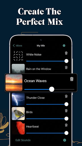使用 Sleepy Sounds 更快入睡、深度放松并减轻压力——汇集自然之声、白噪音和冥想音乐,助您拥有优质睡眠。<br><br>探索数百种舒缓音效、平静乐曲和沉浸式场景,旨在帮助您改善睡眠、深入冥想,并在漫长一天后彻底放松。无论是失眠、焦虑、压力,还是仅仅想享受片刻宁静,它都是您的理想选择。<br><br>🌿 功能亮点:<br>数百种声音,数千种组合,带来无数舒缓时刻。<br><br>🔊 100+ 自然声音与白噪音<br>探索涵盖多种类别的丰富舒缓音效:<br><br>自然之声:森林氛围、树叶沙沙、鸟鸣、篝火噼啪声<br>雨声:雷雨、帐篷上的雨滴、小雨淅沥<br>水声:海浪、溪流、小河、水下环境音<br>动物叫声:青蛙、公鸡、鲸鱼、鸟类<br>冥想音调:禅钵、阿尔法波、环境风铃<br>乐器:钢琴、小提琴、长笛、钟声<br>白噪音:飞机、风扇、烘干机、吸尘器、火车、频率音<br>以及更多助您放松、专注或入睡的舒缓声音。<br><br>* 智能混音功能 – 自由混合叠加多种声音,调节音量,打造您专属的完美放松组合。保存并命名您的混音,方便日后随时调用。<br><br>🌌 高品质音频场景<br>体验精心打造的高品质环境场景集,将您的思绪带入深度平静与专注:<br><br>睡眠场景:午夜特快、天空之眠、海洋心跳<br>雨与风暴:雷电天空、风暴之夜、雨天慰藉<br>冥想:神秘洞穴、禅意寺庙、宁静隐居地<br>放松:树屋、傍晚海滩、公园漫步<br>摇篮曲:快乐之夜、平静湖面、倒影<br>日夜自然:清晨丛林、森林小径、丛林之夜<br>独特场景:复古小镇、飞机客舱、温馨壁炉<br>让您的思绪沉浸在深度平静与专注之中。<br><br>🎶 舒缓放松音乐<br>聆听为不同心境设计的平静音乐库,彻底放松身心:<br><br>睡眠音乐:安宁入睡、梦境漫游、治愈之眠<br>放松音乐:平静波浪、日落情调、平和之镜<br>冥想曲目:正念时刻、禅意花园、寂静小径<br>唤醒与专注:大脑按摩、Delta 波、噪音景观<br>摇篮曲:柔和摇篮曲、小星星、Mindara<br><br>🛠️ 附加功能:<br><br>✅ 智能混音引擎 – 自由混合自然声音、环境场景和放松音乐,并可单独控制音量。创建您独一无二的声景,并保存以备将来使用。<br>✅ 收藏夹 – 快速访问您最喜爱的声音、场景、音乐和混音。<br>✅ 睡眠计时器 – 可设定时间自动停止播放,节省电量,助您轻松入睡。<br>✅ 离线访问 – 大部分内容默认支持离线使用,仅需极少量的网络交互。随时随地,想用就用。<br>✅ 针对 Android 优化 – 专为低电量消耗和长时间后台播放设计,确保不间断的放松体验。<br>✅ 高品质音频 – 精心挑选,声音播放流畅无缝,没有令人分心的循环。<br>✅ 直观用户界面 – 设计简洁、时尚且易于使用,导航轻松自如。<br><br>🌍 加入超过 30 万用户的行列,通过 Sleepy Sounds 改善睡眠、更快放松、减轻压力。<br>🎧 立即下载,开启您的优质睡眠、深度专注和更平静生活之旅!<br><br>需要帮助?请通过应用联系我们的支持:ebitsapps@gmail.com<br>隐私政策:https://ebitsapp.github.io/sleepy-sounds-privacy-policy/<br>服务条款:https://ebitsapp.github.io/sleepy-sounds-terms/
