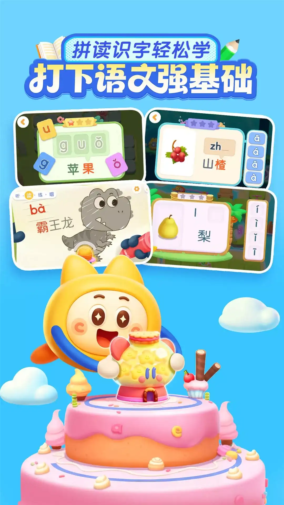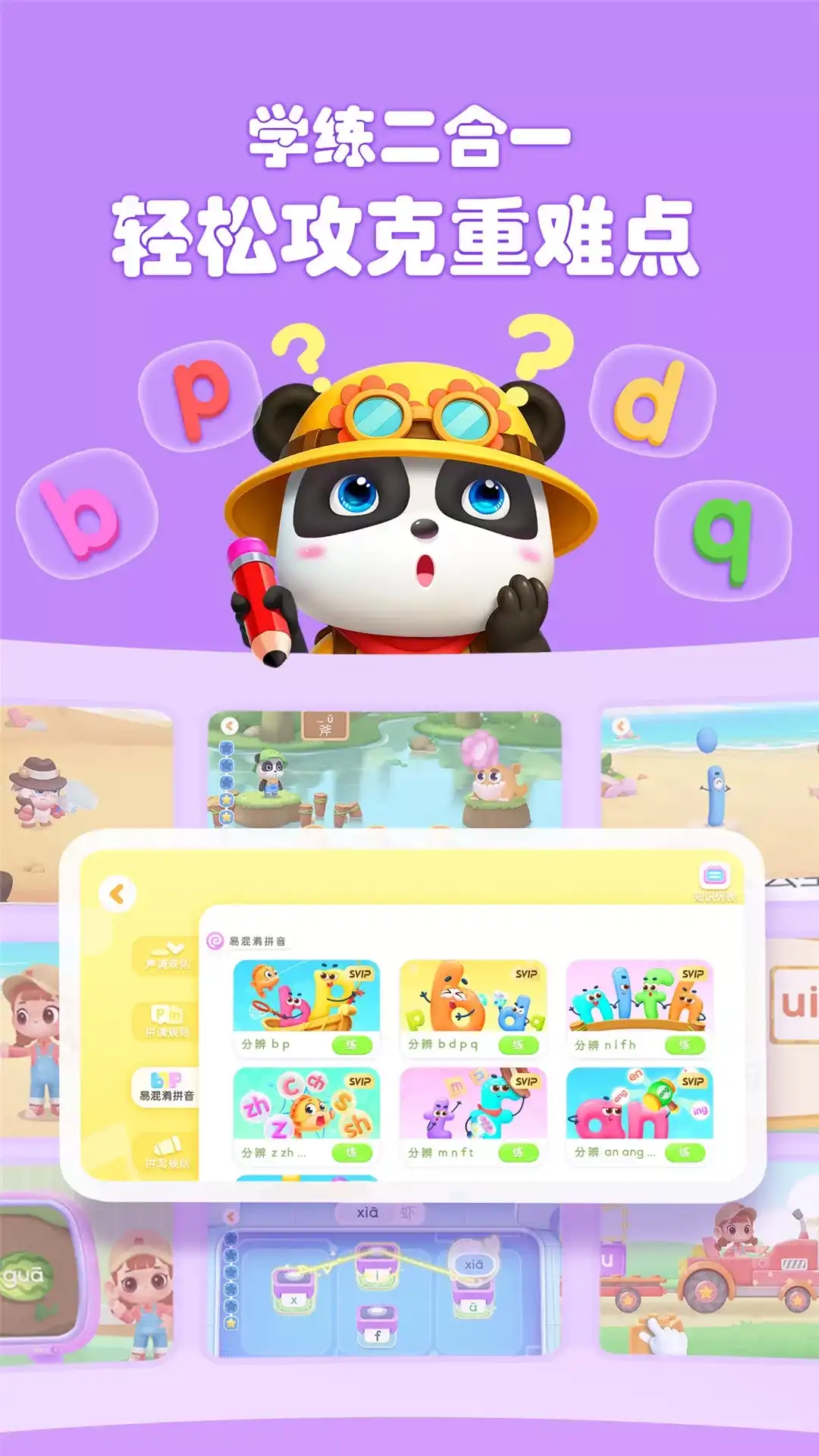 【宝宝巴士拼音】是由宝宝巴士官方打造的拼音启蒙软件。 【宝宝巴士拼音】特色 (1)6大环节,强化记忆 【宝宝巴士拼音】通过认、读、调、练、拼、写6个环节,全面提升儿童拼音能力,为自主识字与阅读打实基础。 (2)趣味互动,激发兴趣 【宝宝巴士拼音】打造870+互动环节、51集原创拼音动画和15首拼音儿歌,点燃儿童学拼音的兴趣。 (3)语音跟读,AI纠音 真人发音示范,并通过系统检测儿童的跟读情况,及时反馈、纠正发音错误,让儿童掌握正确的发音技巧。 (4)专项练习,巩固所学 【宝宝巴士拼音】在拼音学习中穿插强化测试,提升儿童拼读能力;还有“拼音乐园”专项练习,帮助儿童在快乐中巩固重难点。 (5)家长设置,贴心好助手 家长可依据儿童的拼音水平管理学习进度、环节和使用时长。还可自行在拼音库中“打印拼音”,让儿童线上线下结合学习。 从【宝宝巴士拼音】掌握拼音拼读开始,到【宝宝巴士汉字】识字认字,【宝宝巴士思维】锻炼思维逻辑,【宝宝巴士ABC】学习少儿英语,【宝宝巴士科学】探索十万个为什么,【宝宝巴士阅读】养成阅读习惯,宝宝巴士,陪伴孩子每一步成长。