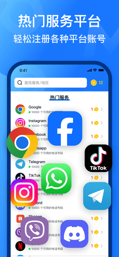 “验证码”助力简化线上注册流程、守护隐私安全,是一款集虚拟手机号租赁、邮箱租赁及企业邮箱服务于一体的一站式解决方案。 无论你需要注册主流网站还是各类应用,本应用均可帮你摆脱使用个人信息的烦恼,保障你的线上身份安全。 核心功能: ● 虚拟手机号租赁:选择目标服务及手机号所属国家,即可租赁虚拟号码接收短信验证码。全面兼容多数热门平台,功能与SMS Virtual一致。 ● 邮箱账号租赁:提供多种邮箱后缀,支持几乎所有主流网站及应用的注册需求。无需复杂配置,租赁后即可直接使用。 ● 企业邮箱租赁:专为企业定制三个梯度方案:标准版适配小型团队日常办公沟通,AI尊享版搭载智能筛选、自动分类等高效功能,集团版支持大规模账号管理及权限定制。 为何选择我们? 高兼容性:可无缝适配多数主流网站及移动应用。 隐私守护:避免泄露个人手机号及邮箱,减少垃圾信息干扰与隐私泄露风险。 操作便捷:界面直观易懂,几步即可完成注册验证。