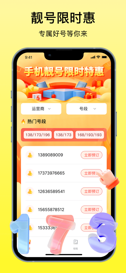 短信平台 - 多国虚拟号码&靓号专属服务 一款集虚拟号码服务与靓号预定于一体的实用工具,为你的线上生活提供隐私保障与个性化选择! 支持多国虚拟号码短租、长租服务,租期灵活可选(2小时至1个月),无需实体SIM卡即可接收各类平台短信验证,轻松解决社交账号注册、跨境服务使用、商业推广等场景需求,覆盖180+国家及700+热门应用,有效规避地理限制,守护个人隐私匿名性。 专属靓号预定功能来袭!海量连号、吉祥号等优质手机号可供选择,通过靓号币即可兑换,成功购买后实体SIM卡将快速快递送达,满足你对个性化号码的需求。 平台操作便捷,三步即可获取号码:选择服务与国家、完成购买、接收验证信息,支持多种安全支付方式。无论是个人隐私保护、跨境线上操作,还是商业账号管理,都能为你提供稳定、高效的号码服务支持。