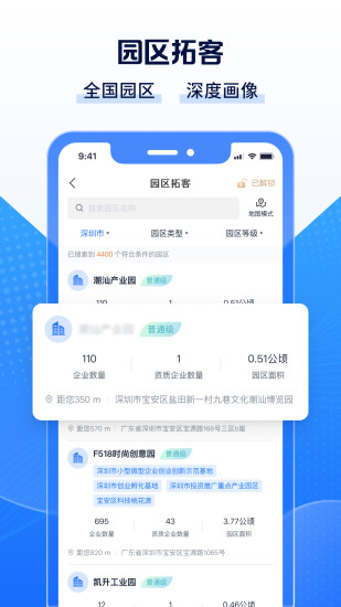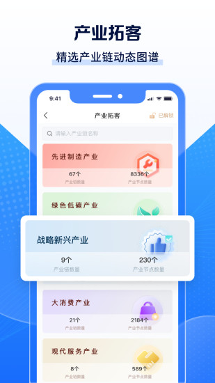 【Clue智拓客】是一款精准展业获客平台,根据客户的标签需求匹配海量资源,快速触达客户的工具,提高产品服务的营销转化率,通过整合目标企业的数据特征,形成营销线索库、企业标签库、风险事件库等维度的基础数据池。 = 谁在使用Clue智拓客 = 【对公客户经理】找客户谈合作,挖掘行业人脉关系,获取海量目标企业联系人电话。 【银行人】深挖行业好友关系、合作关系,实现行业人脉指数级增长。 【对公销售】监控合作方公司经营动态、评估合作方实力。 = 核心功能 = 【企业全景画像】全方位剖析企业,评价企业;综合企业评价模型,海量企业信息,包括工商信息、知识产权、涉诉违规、供应链信息、新闻舆情、投融资信息、招中标信息、司法诉讼、资质信息、招聘信息等 【专题获客】特色专题,及时跟进;专精特新企业、科创专题企业、科技型中小企业、高新技术企业、瞪羚企业、国家标准制定企业等; 【园区获客】园区数据,企业洞察;汇聚全国/区域内园区名录,可按地市、区县逐层下钻。结合园区企业行业标签、园区资质标签,快速定位目标产业园区,查看区域内园区及企业数量信息。