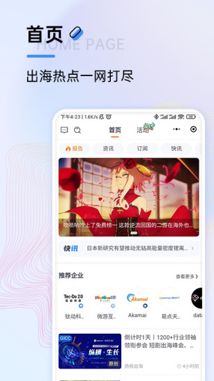 扬帆出海,专注服务中国互联网出海,助力中国互联网企业出海全球化,是一个集合了资讯、活动、人脉资源的平台,用户可以在这里了解到行业资讯和报告,查看和报名活动,寻找人脉、企业和合作。 【人脉】汇聚了出海精英,可通过查看联系方式、交换名片和在线留言方式快速建联。同时深度关联企业,快速直达企业各部门联系人,快速高效。 【合作】自主发布和筛选需求,200+社群资源,10万+用户,1.5万+共同关注。需求双方直接沟通,合作达成一步到位。 【报告】权威数据曝光,深度解析行业方向。覆盖游戏、应用、电商、金融、教育和互联网等领域,中国、拉美、东南亚和北美等地区。 【企服】汇聚超过1万+企业,用户直达企业品牌页面,可直接查看:企业信息、产品/服务信息、合作需求、企业资讯、已合作企业等,为企业品牌持续加码。同时企业商务通,助力企业拿下目标市场。 【活动】一键了解扬帆出海近期活动参与方案、最新活动安排、一键报名。让你不再错过任何一个与精英交流机会 【资讯】最新行业资讯、原创文章、深度企业专访、数据分析报告等,提供实时的行业动态,企业出海方法论,助企业少走弯路,快速出海。