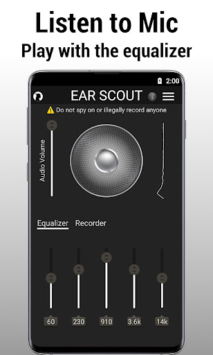 戴上耳机,点击中央按钮,即可听到并放大手机麦克风拾取的声音。使用耳机可以避免音频反馈。<br><br>您还可以录制音频并设置自动噪音触发功能,以便在噪音超过指定阈值时收到电子邮件通知。<br><br>无论您是想负责任地监控周围环境的音频,还是仅仅为了好玩而放大声音,Ear Scout 都会实时将麦克风的音频传输到您的耳机中。要微调输入信号,请使用音频均衡器。<br><br>免责声明:本应用用于无害的声音放大(例如,用于监听自然/财产监控),而不是通过蓝牙监听私人对话。请负责任地使用 Ear Scout。