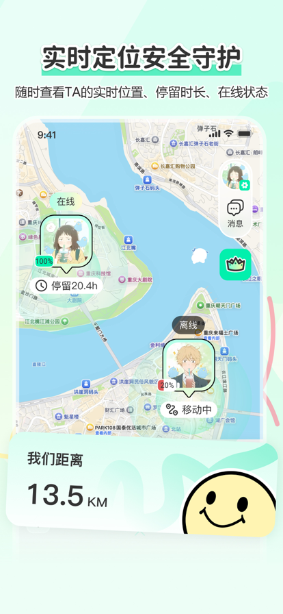 郑重声明:本应用需与对方下载本应用注册并接受邀请,方可实现位置共享。 定位软件是一款专为家人、情侣、朋友之前设计的定位软件,您可以方便快捷的查询好友亲人的动态位置,时刻保护他们的出行安全。 主要功能: 【实时定位】为您24小时不间断查询精确定位 【一键报警】在紧急情况下,一键报警,保护家人朋友安全 【发现家人】 在无法联系到家人时,能够更快的找到他们。 【位置记录】 保护家人安全的移动软件,让你能轻松找到家人位置 【应用自动订阅会员说明】 1. 新用户3天免费试用,到期后将自动续订为付费订阅。 2. 付款:用户确认购买并付款后计入iTunes账户,购买自动订阅会员账号,会在每个订阅到期前24小时,会从您的iTunes账户中扣费,扣费成功后顺延一个订阅周期。 3 如需取消订阅,请手动打开苹果手机“设置” --> 进入“iTunes Store与Apple Store” --> “点击Apple ID”,选择“查看Apple ID”,进入“账户设置页面”,点击“订阅”,选择VIP会员服务取消订阅即可。如果未在订阅期结束的至少24小时前关闭订阅,将视为您同意继续授权,此订阅会自动续订。 隐私政策:https://www.ruize.site/yinsi.html 服务协议:https://www.ruize.site/fuwu.html