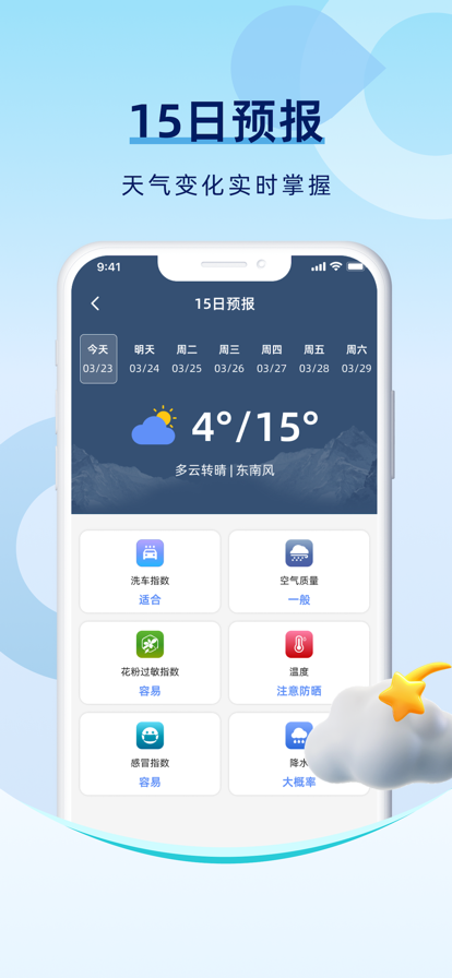 提供实时天气信息,24小时天气预报、未来15天天气预报等全面天气信息。提供穿衣、紫外线、舒适度等 生活指数。简单天气,为您开启美好生活! 精准实时与24小时逐小时天气预报,温度变化冷暖早知道。 未来2小时雨雪预报,精准到分钟级别,让您出行无忧。 超长15天天气预测,预知晴雨为您的日常生活早做打算。