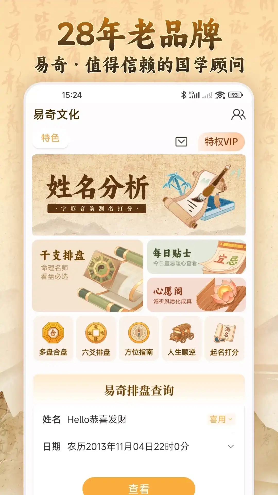 周易国学文化应用工具,详细的生辰干支排盘必备,专业内容为您解疑释惑,心灵专家,民俗事项,千年中华优秀文化精髓传承,国学自信弘扬经典。 专家语音问答平台,真人名师在线为你接call 你想知道自己和喜欢的人的先天配对指数吗? 你想通过生辰或星盘了解到自己的顺逆吗? 你想了解到最近发生的星闻趣事吗? 传统民俗达人分析,热门易学文化资讯;