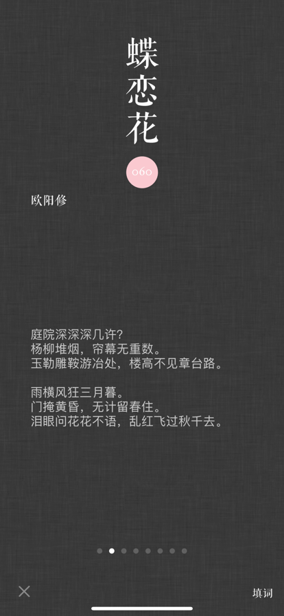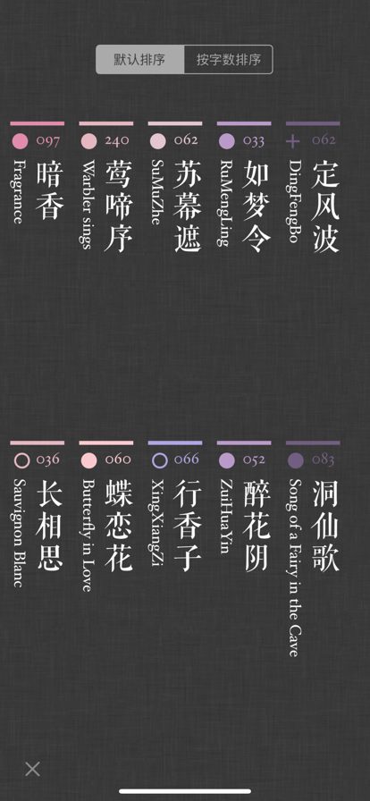 词Ci是第一款能够自动检查平仄、辅助填词的App。选择相应词牌后,即可以开始优雅流畅的填写。在写词过程中,除了会高亮出平仄不对的汉字外,还可以方便地查找同韵字、随时切换查看当前词牌的写作规则;除此之外,词ci还支持更换词笺纸背景,使您的习作完成后更加完美; - 简单易用的自然交互界面 - 精美优雅的词笺排版,自己的习作可以更换词笺纸背景 - 近100个常用词牌 - 近300首著名例词 - 中华新韵、平水韵、词林正韵,三种韵典任意切换 - 可以生成图片保存到相册、新浪微博、微信朋友圈