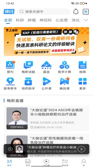 医会宝,专业的医学知识交流平台,涵盖了医学会议课程、大咖精品课程、考试晋升、科研助力、科普服务、会议管理工具等学术内容,帮助医生更高效地获取新的医学资讯和学术提升。 【医学会议课程】 覆盖大量临床专科,专业医学课程 海量医学课程轻松搜索 【大咖精品课程】 一站式学术课程策划及推广 学术内容永久保存,随时分享 【考试晋升】 专家讲授的专业课程 海量题库考前助力 【科研助力】 科研课程助力解决难点 提供科研一站式解决方案 【科普服务】 专业课程指导,重点难点轻松掌握 录用率高,发表周期短 【会议管理工具】 提供线上线下整体会议解决方案 专业运营,拥有完善的整体管理模块