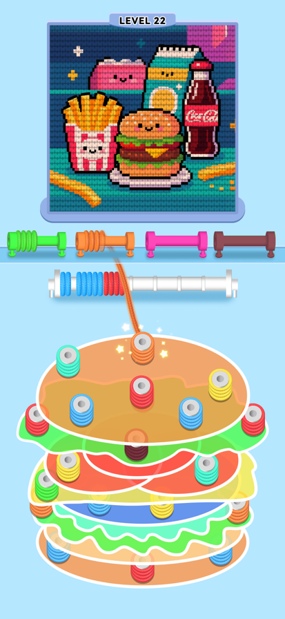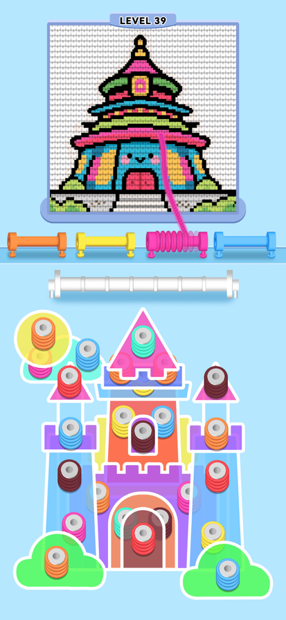 听说过用毛线球画画吗? 快来解救这些被困的毛线球,用它们的色彩,编织出你的专属像素画世界吧! 玩转毛线の秘诀: -瞪大你的卡姿兰大眼睛,仔细观察目标颜色,在毛线球堆成的拼图中找到同款! -集齐3个相同颜色的毛线球,就能解锁新的颜色,为你的画布疯狂上色! -灵活运用你的“第二空间”——暂存杆,它能帮你收集更多毛线球,但可别把它塞爆了哦! 海量精美的像素画正等着你的妙手点缀,快来用毛线球,编织出你的色彩狂想曲吧!