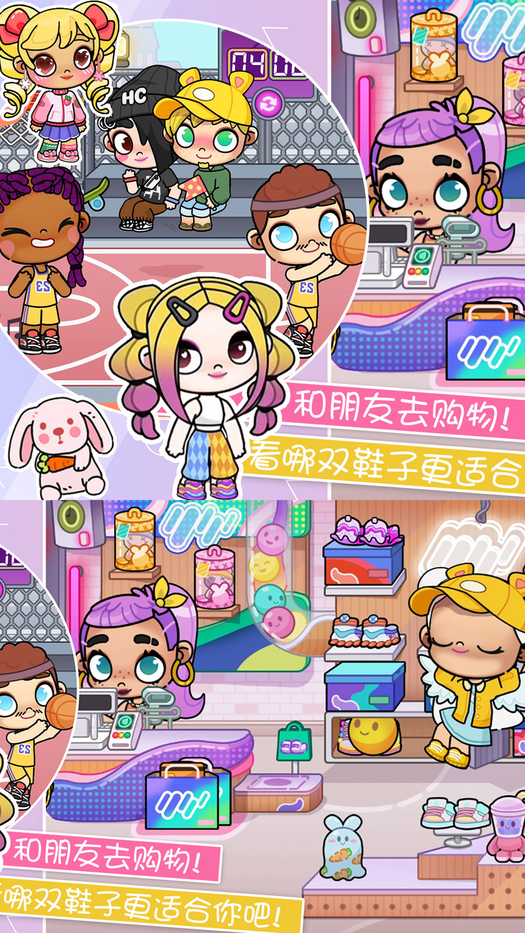 这就是创建自己的世界的开始,和他/她一起探索未知的场所!!<br><br>-百种场景:购物中心、游乐园、美装沙龙、家、度假区(海滩&小岛、观光区)、脱口秀现场、综艺演播厅等等......<br><br>-度假区(海滩&小岛、观光区):入住度假区,享受5星级的美食。海景,神秘的钥匙,独特的服饰。<br>阳光、沙滩、海浪、老船长!在海滩上游戏,去寻找小岛上美人鱼的秘密!!找到巨型的宝藏,带到观光区进行拍卖!!<br><br>-礼服party:这次必须要像白雪公主一样穿着美美的礼服出场哦,或者装扮得帅气逼人!在服装店、美发沙龙都可以完成你的搭配,成为全场瞩目的焦点人物吧!<br>-酒店花园:花园迷宫是新的游戏体验!让我们来一场大型的捉迷藏游戏吧!猜猜转角遇见谁!?<br><br>-网红餐厅:和闺蜜们、家人们一起享受五星级酒店的自助餐时光!!各种美食、蛋糕甜品!打卡拍照成为网络红人!!还可以前往屋顶游泳池,和朋友一起散步闲逛,听听一些美妙的音乐!