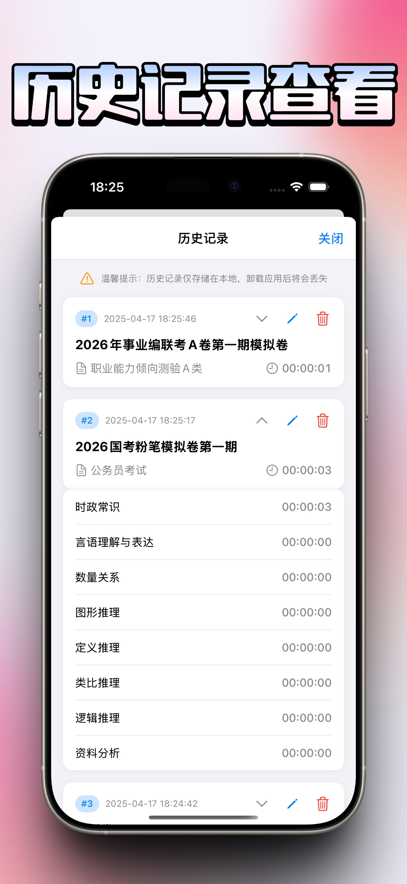 这是一款事业单位考试题库软件,汇集全国20多个省市近三年事业单位考试真题, 包含《公共基础知识》和《职业能力测验》两个考试科目,共一百多套,12000题,覆盖各个知识点,助你早日上岸! 软件集专项事业单位题库、历年真题、错题集为一体,包含模拟考试和日常练习两种做题模式,上线以来好评如潮! 我们注重用户的实际需求,特别是在职考公人士的需求,App图标更换为记事本(低调在职备考),深色模式等功能遥遥领先友商 我们的题库可能不是最全的,但我们的功能一定最懂你 不到100M的小安装包体积,意味着对隐私的全方面保护,安装包极致纯净,不包含各种收集信息的代码 在公考内容资源建设上有经验的朋友,真诚期待与您的合作 联系邮箱:hualeisoft@126.com,包括但不限于公考培训课程设计,公考讲师