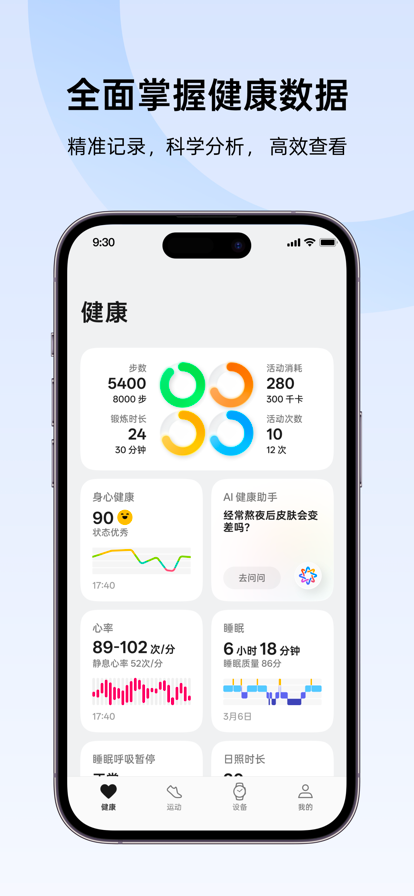 小米运动健康是一款整合小米手表/手环运动数据与健康服务的应用程序,为用户提供专业、极致的使用体验,打造贴心的个人健康助手。后续将会支持更多穿戴设备,开发更多好用好玩的功能,敬请期待。 小米运动健康支持产品:小米手表系列、红米手表系列、小米手环系列、红米手环系列 【十余种专业运动模式,精准记录】 APP精准记录运动模式数据:支持跑步、骑行、登山、越野等 17种运动模式的记录,打开App便能查看每一次运动的完整数据。每天、每周、每月的运动情况,一目了然。还能根据自身情况设定目标,督促自己积极完成。 【活力指标】 活力指标全新升级,支持中高强度活动时长和站立的目标设定,活力彩虹,健康生活。 【多场景全天候健康管理】* 小米运动健康协助你管理个人健康,让你永远保持最佳状态。通过连接我们的小米或红米手表/手环设备,对心率、睡眠、压力、能量等健康指标进行全天监控和风险预警。体重、女性健康等健康数据支持手动记录和数据管理。 【夜晚睡眠监测,专业分析】* 配合有睡眠监测功能的小米或红米手表/手环设备,记录每晚睡眠信息,通过深度分析深睡、浅睡、快速眼动等睡眠状态,睡眠心率、呼吸质量、翻身等睡眠身体数据,生成专属睡眠报告,提醒你及时调整睡眠习惯。 【健身课程内容,减脂增肌不迷茫】 APP支持丰富的徒手健身和器械健身课程,帮你纠正动作,科学发力,居家也能有效锻炼,跑步、瑜伽、核心训练各种丰富课程,帮你养成良好的运动习惯。 【支持苹果健康数据互通】 可以通过Apple「健康」应用查看您的运动健康数据。 目前支持向苹果健康传输的数据有:步数、步行+跑步距离、划水次数、活动能量、睡眠、体能训练、心率以及有氧适能数据。 【多功能 NFC,公交、门禁一刷即开】 通过小米运动健康App绑定公交卡、门禁卡,带上手表手环抬手就能进站上车。 【小爱同学智能助理,语音操控 MIoT 智能家居】 唤醒全能的小爱同学,一句话帮你搞定日常事务。在App上可以get小爱同学的全部技能,让她做你的贴身智能助理。 【各项贴身提醒,不错过每一个重要时刻】 可以在小米运动健康App里设置你所需要的应用通知或事件提醒,例如微信、短信等,通过手表手环随时提醒你,不让你错过任何一个重要时刻。 *免责声明: 除为用户提供的手动记录健康信息服务外,其他应用内的所有健康服务都仅为同步并记录手环或手表的相关信息。所有健康相关的数据、结果、建议等仅供参考,不用于医疗用途,包括自我诊断或咨询医生,仅用于一般健身和健康目的。 目前接入应用的所有手环/手表产品并非医疗设备,无法提供任何形式的医疗服务,如有身体不适请及时咨询医疗机构。