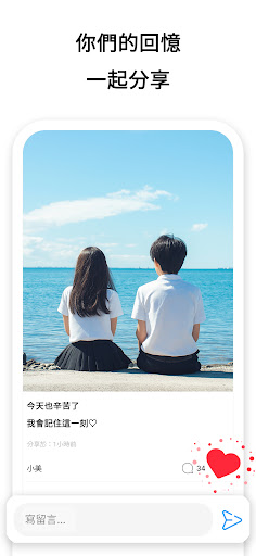 在找一款真正好用的情侶 APP 嗎?<br><br>「情侶小工具」能一眼看見你們在一起的天數,並自動提醒特別的紀念日。記錄你的愛情故事與第一次的時刻,然後分享給另一半,讓彼此更親近。<br><br>有了「情侶小工具」:<br><br>* 保留每一刻:「在一起天數」計數器,從第一天到現在即時顯示<br><br>* 不再錯過:10/100天、前一天等重要日子的提醒<br><br>* 愛情故事:把回憶配上照片寫進情侶日記<br><br>* 初次時刻:記錄第一次的回憶,並用表情符號表達當下心情<br><br>* 情侶連結:在對方的貼文上留言與按讚,保持互動與關係<br><br>* 自訂小工具:以主題+情侶照片打造專屬主畫面風格<br><br>* 簡單直覺:任何人都能輕鬆新增與編輯<br><br>* 情侶月曆:紀念日一目了然,記事更自由!<br><br>立刻下載「情侶小工具」,讓每一天都更特別!